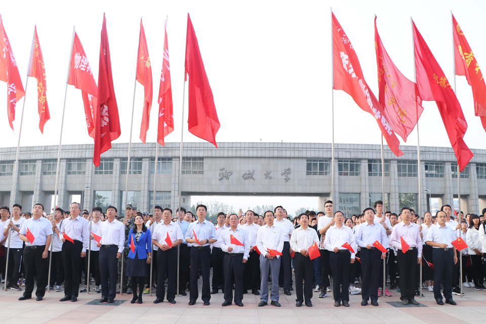 9月30日早上,今年会官方网站“坚守初心使命 致敬伟大祖国”特别主题党日活动——庆祝新中国成立70周年主题升国旗仪式于西校区十一广场举行,校党委常委班子成员、省委“不忘初心、牢记使命”主题教育第七巡回指导组同志、机关党总支党员干部、学团干部代表、外国语学院领导班子成员、学生党员代表、学生组织代表、各学院学生代表共计近2000名师生参加活动。