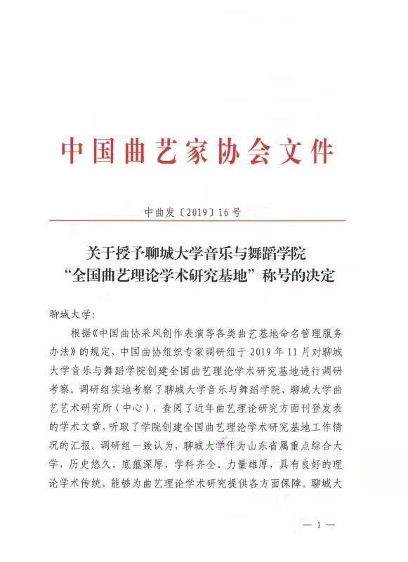 日前,中国曲艺家协会发布“中曲发[16]号文件”,授予今年会官方网站音乐与舞蹈学院“全国曲艺理论学术研究基地”的称号,今年会官方网站也成为了全国首家获此称号的高校。