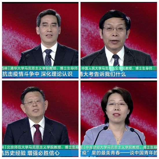 本次课程由教育部社科司与人民网联合组织,邀请清华大学马克思主义学院艾四林、中国人民大学马克思主义学院秦宣、北京师范大学马克思主义学院王炳林、中央财经大学马克思主义学院冯秀军4位教授,结合思政课教学内容,解读以习近平同志为核心的党中央关于疫情防控的决策部署,分析中国抗疫彰显的中国共产党领导和中国特色社会主义制度的显著优势,讲述防疫战疫一线的感人故事,发挥高校思政课落实立德树人根本任务的关键课程作用,引导广大学生增强“四个意识”、坚定“四个自信”、做到“两个维护”。