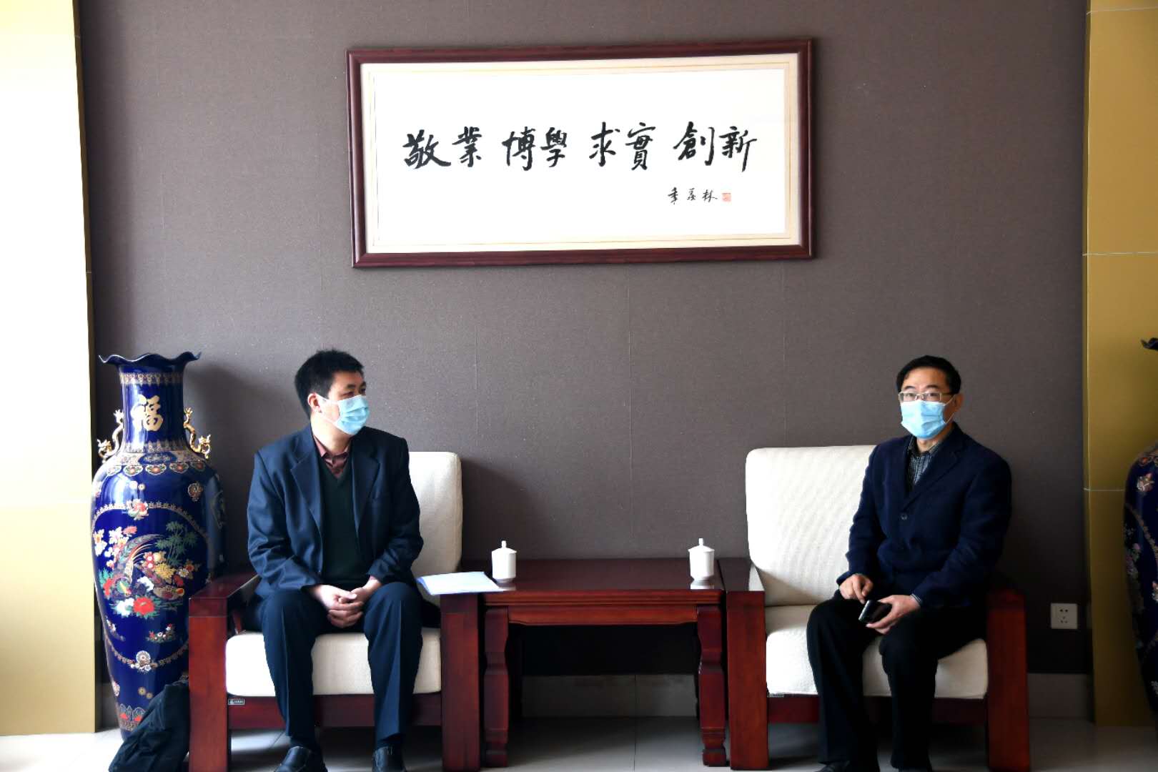 4月26日,山东教育招生考试院副院长方钢山一行来校检查指导书法学专业招生联考准备工作。党委副书记、校长王昭风,党委常委、副校长李兆俊与客人进行了座谈交流。