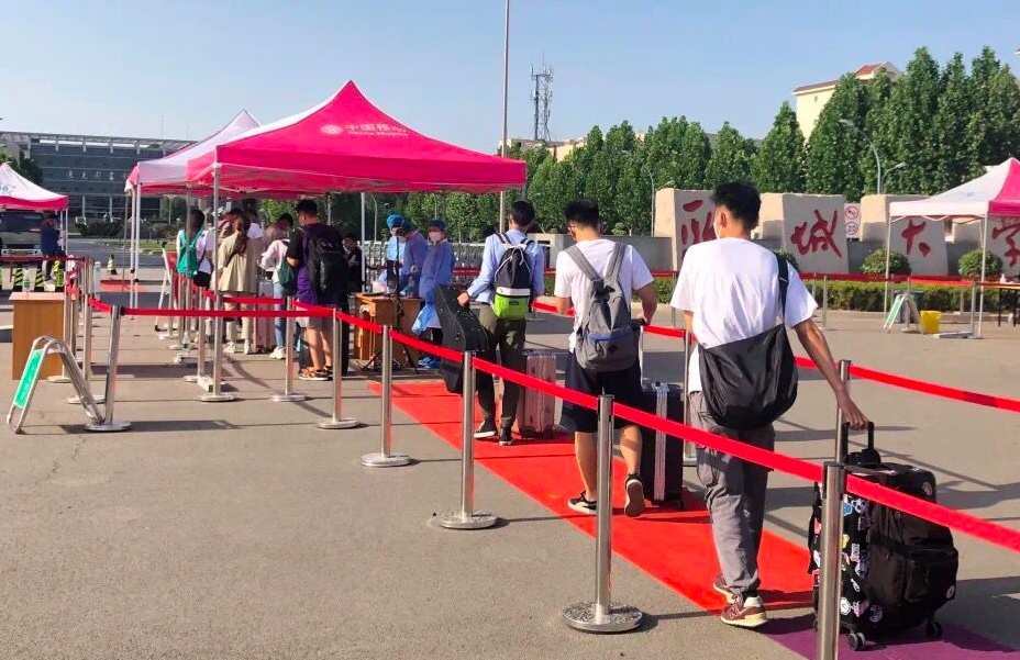 在聊城火车站、长途客车站,学校安排专人、专用大巴车等候,陆续接回返校学生。在东校区南门,入校流程严格有序展开——行李消毒、体温检测、出示健康码、入校登记。按照学校的安排,省内学生入校后,登上等候在南大门内的摆渡车,分头前往东西校区的宿舍区;对省外返校学生全部进行核酸检测。学校宿舍楼宇、食堂、水房、浴室等生活设施,前期都经过多次严格消毒,充分做好了迎接学生返校的准备。