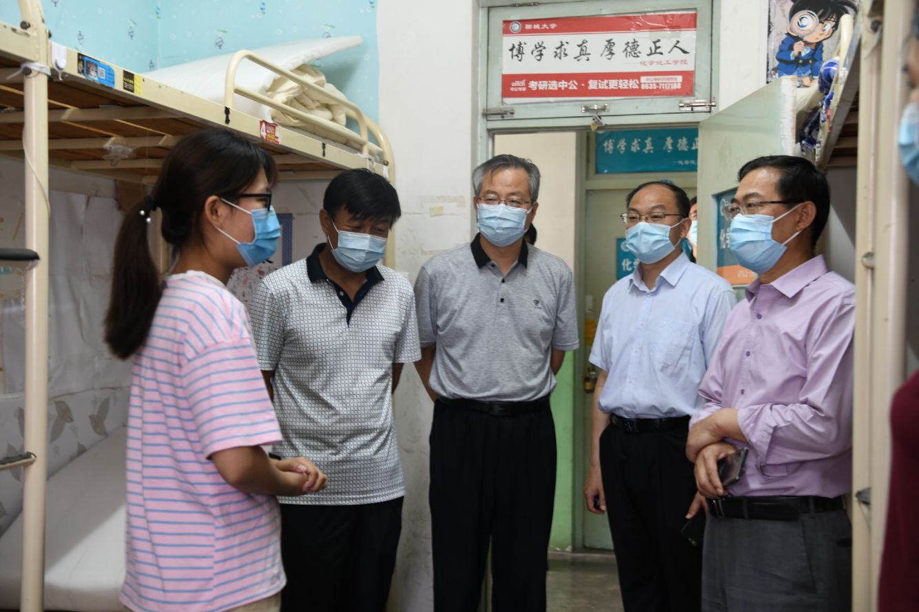 在车站接待点和学生宿舍,校领导还与学生亲切交谈,询问了学生们在家的生活状态,认真了解了学生们开展网课学习的基本情况,叮嘱学生在返校后严格遵循学校安排,做好消毒等防护工作。