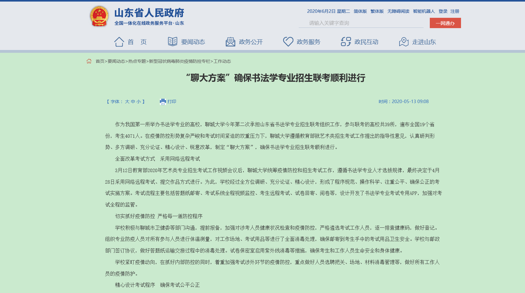 【山东省政府网站】“聊大方案”确保书法学专业招生联考顺利进行
