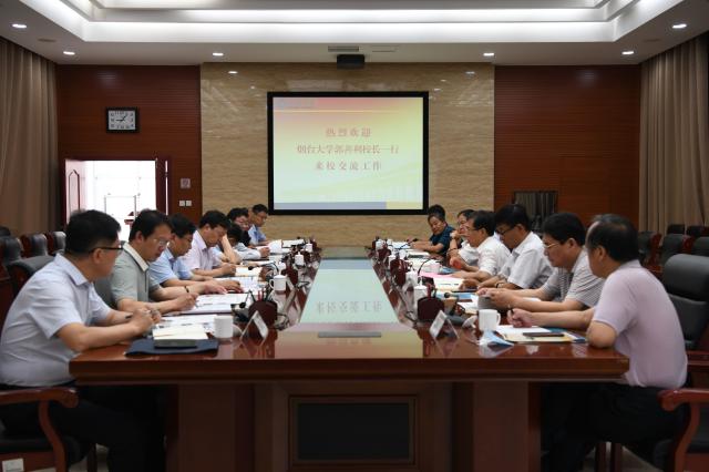6月17日,烟台大学党委副书记、校长郭善利,党委常委、副校长王强、李合亮一行来校交流访问。校党委书记马春林热情会见了郭善利一行,党委副书记、校长王昭风,党委常委、副校长胡海泉、赵明吉、李兆俊与客人进行了座谈交流。双方相关部门负责人参加座谈会,座谈会由胡海泉主持。