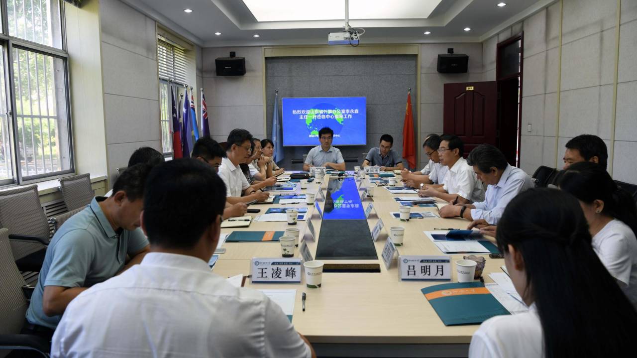 7月20日,山东省外事办公室党组成员、副主任李永森一行6人在聊城市外办党组书记、主任谢华等相关负责人的陪同下来校,就山东省外事研究和发展智库建设工作进行调研。党委副书记、校长王昭风热情接待了调研组一行。