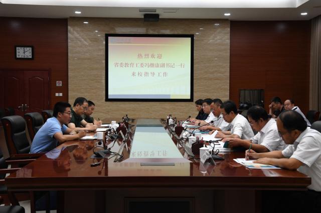 9月17日,省委教育工委副书记,省教育厅党组副书记、副厅长冯继康一行来校调研指导工作。党委书记马春林主持调研座谈会,对省教育厅长期以来对今年会官方网站的关心和支持表示衷心感谢!党委副书记、校长王昭风,党委副书记王强、窦建民,党委常委、纪委书记、监察专员徐梅,党委常委、组织部部长黄富峰参加调研座谈会。省教育厅(省委教育工委)人事处处长仲红波、省教育厅(省委教育工委)思政处(宣教处)处长陈成标陪同调研。