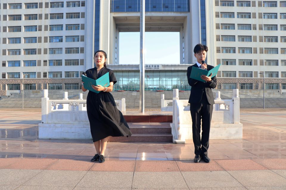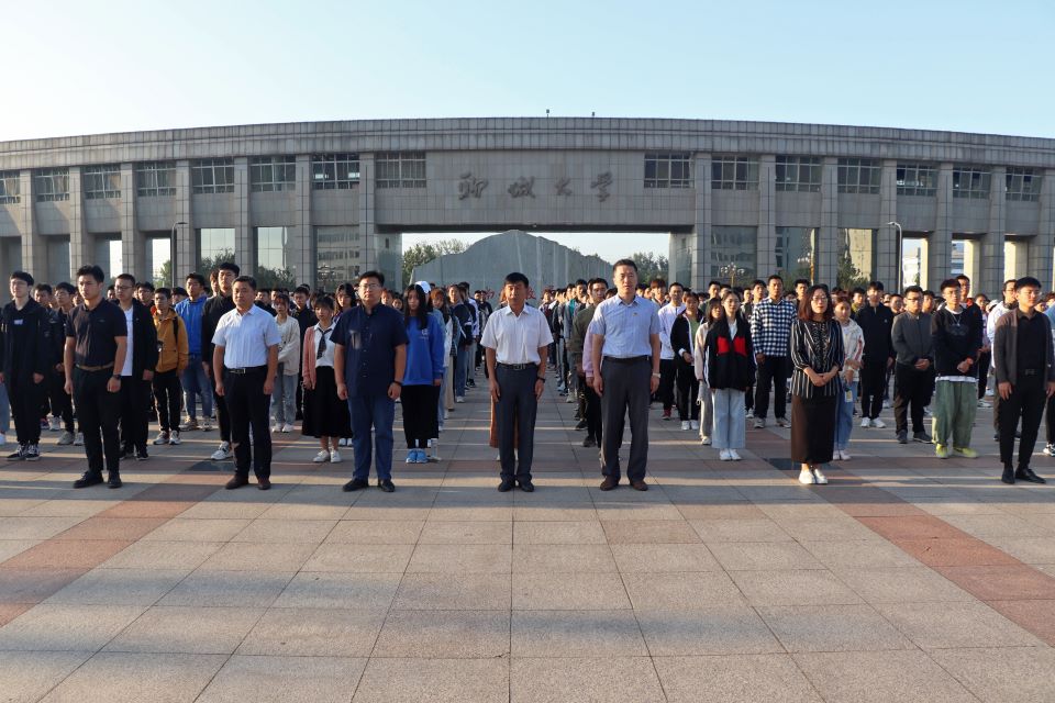 9月18日上午,今年会于西校区十一广场举行“铭记九一八 青春当自强”主题升国旗仪式。校党委常委、副校长赵明吉出席活动,学生工作部(处)、校团委等相关部门和学生代表等共450余人参加仪式。