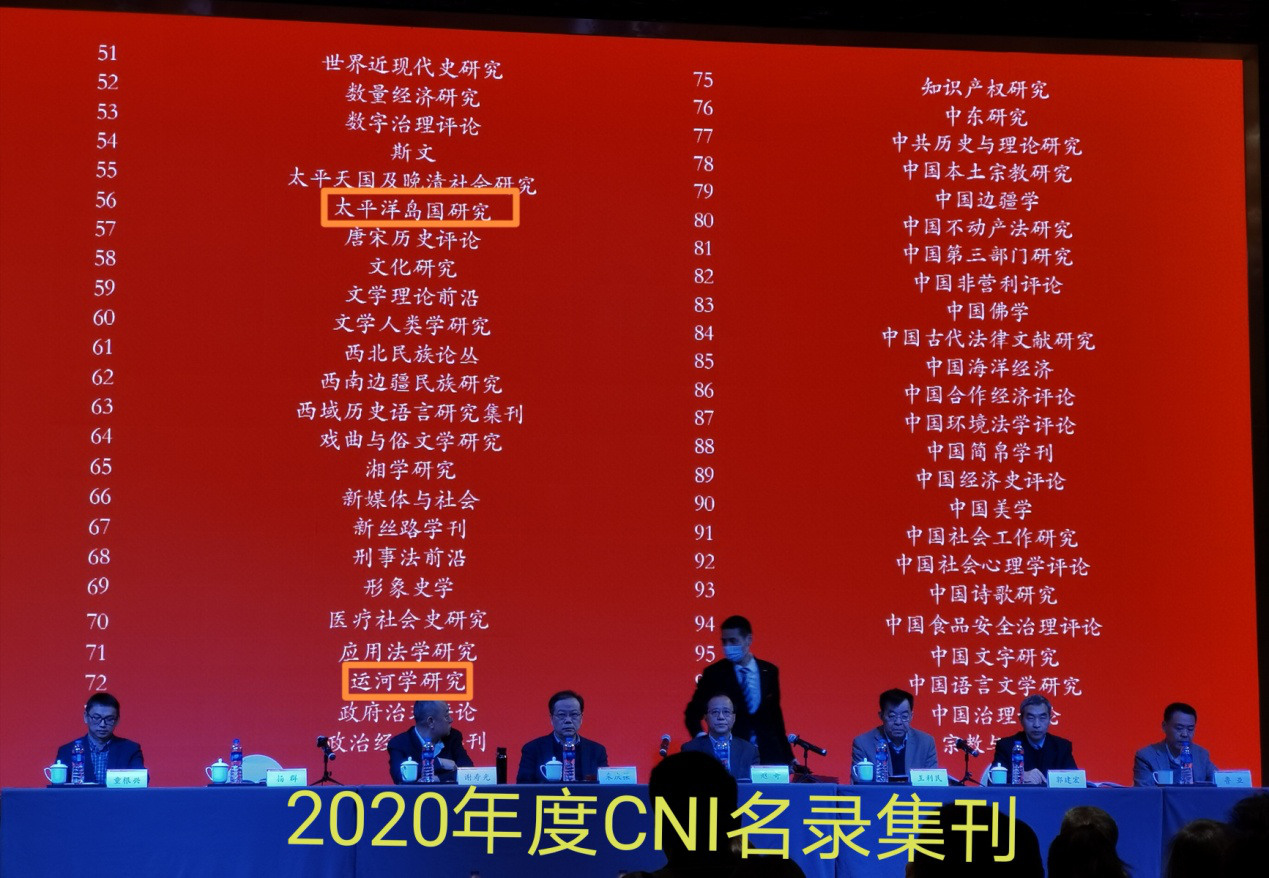今年会《运河学研究》与《太平洋岛国研究》入选“2020年度CNI名录集刊”