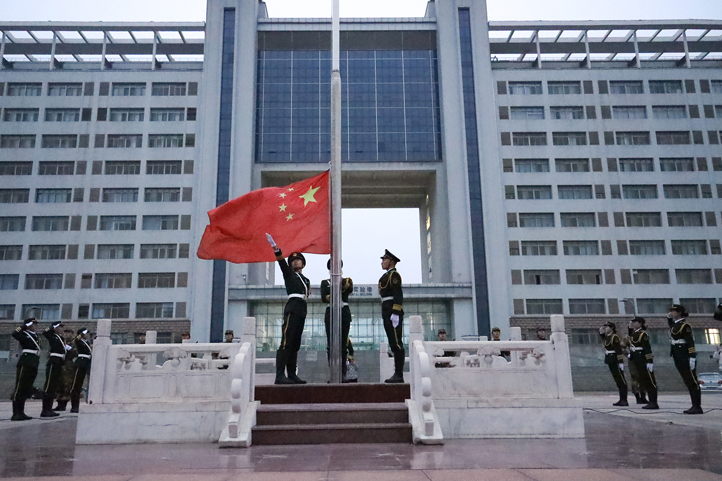 7时,国旗护卫队迈着矫健的步伐,护卫着五星红旗而来。当雄壮的《义勇军进行曲》奏响,鲜艳的五星红旗迎着朝阳徐徐上升,全体师生肃穆而立,深怀对革命先辈的崇高敬意,向国旗行注目礼。