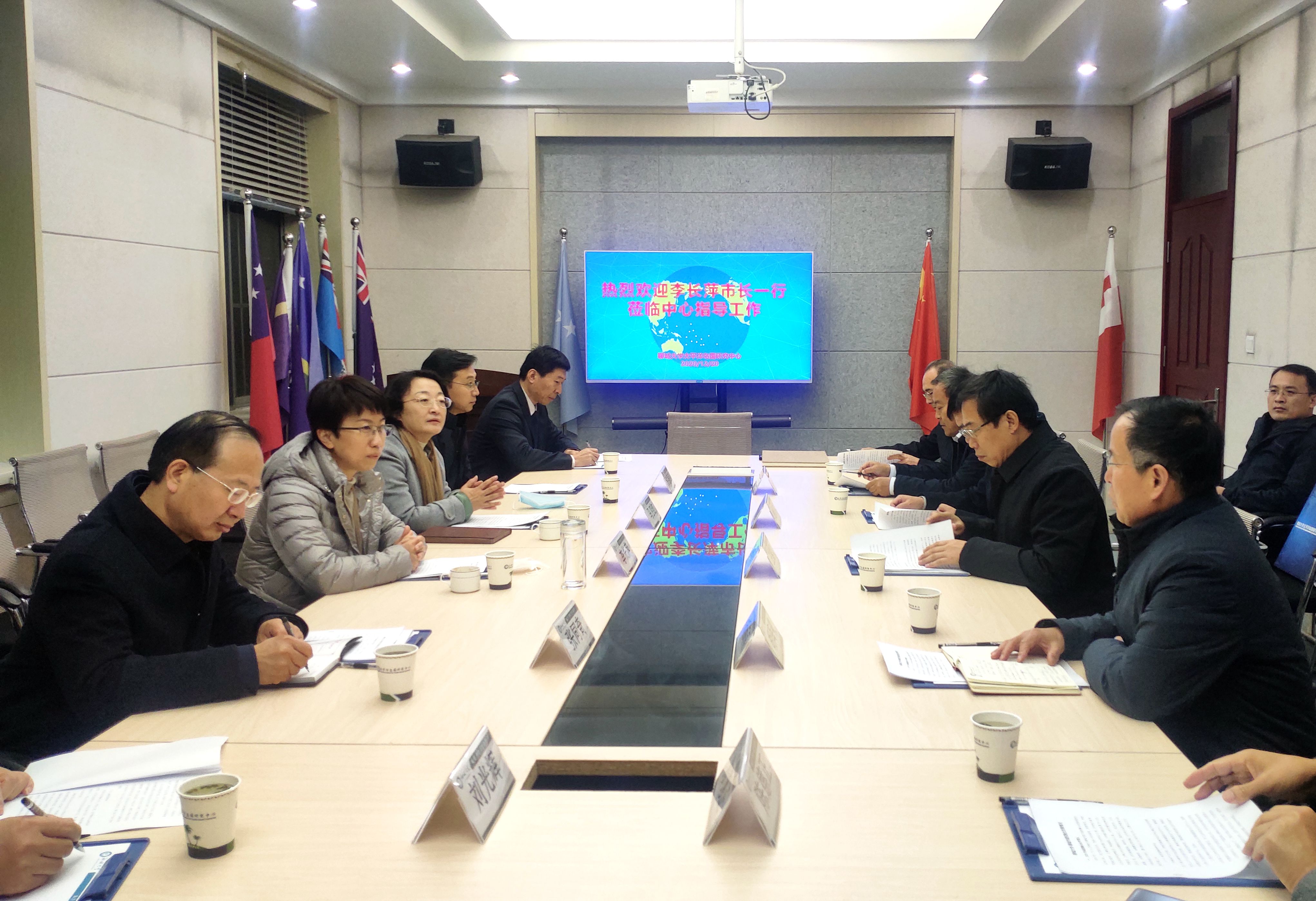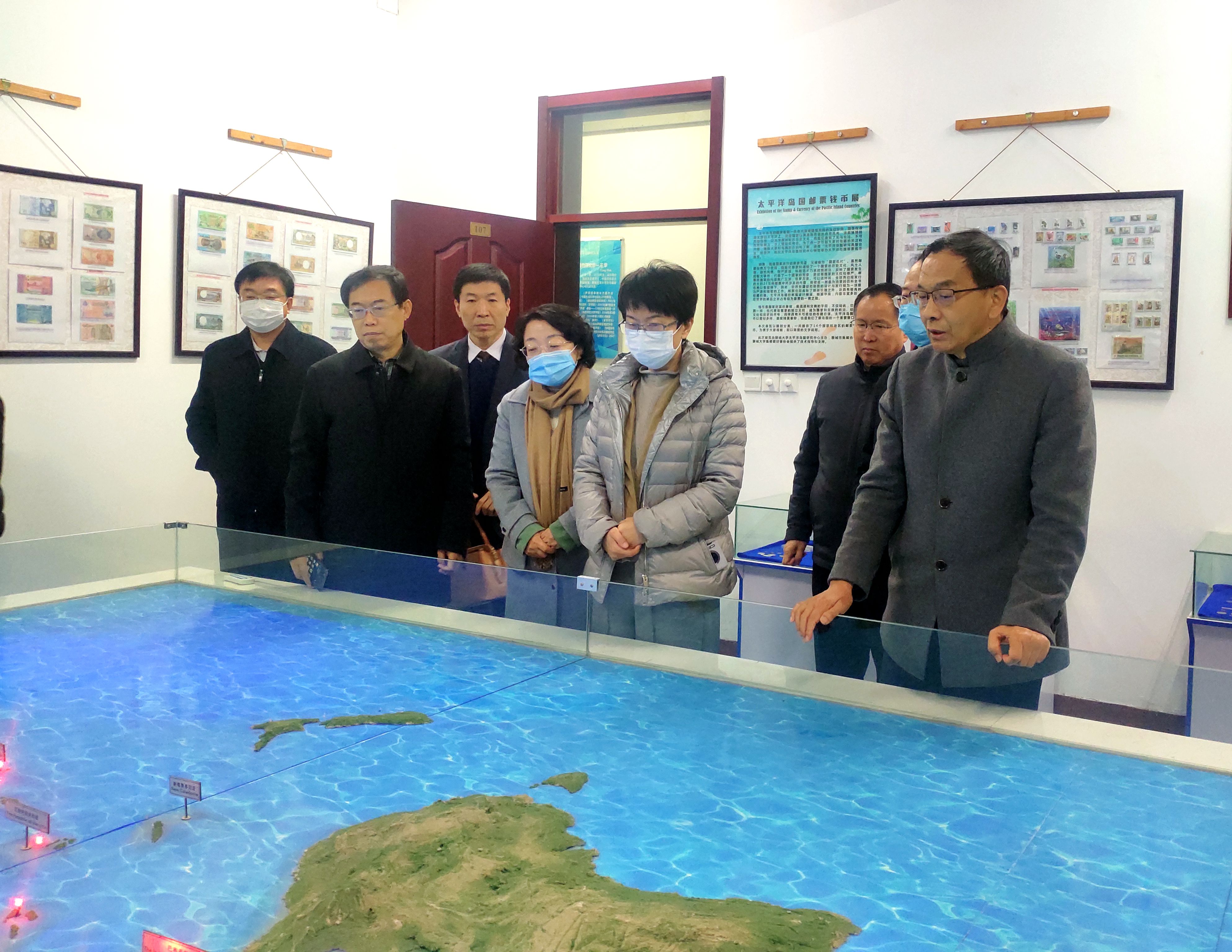 李长萍一行先后来到高分辨率对地观测系统山东聊城数据与应用中心、运河学研究院、太平洋岛国研究中心进行实地调研。每到一处,李长萍都与研究人员深入交流,详细了解校地合作、学科建设、成果转化等方面的情况。
