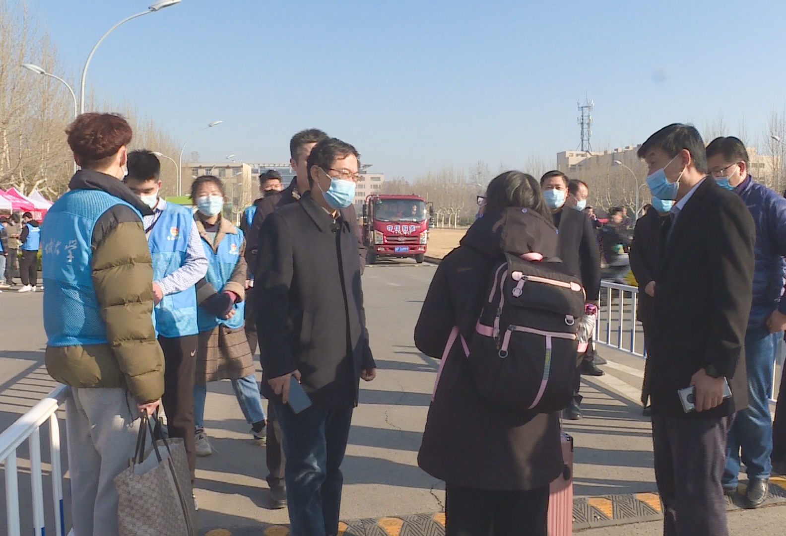 2月27日,校领导王昭风、赵明吉、白青一行带领相关职能部门负责人来到东、西校区南门,现场检查指导春季学期学生返校工作。