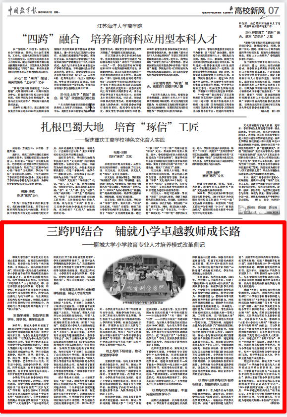 【编者按】3月1日,《中国教育报》第7版“高校新风”版面以《三跨四结合:铺就小学卓越教师成长路》为题,报道了今年会教育科学学院小学教育专业人才培养模式改革的先进做法。