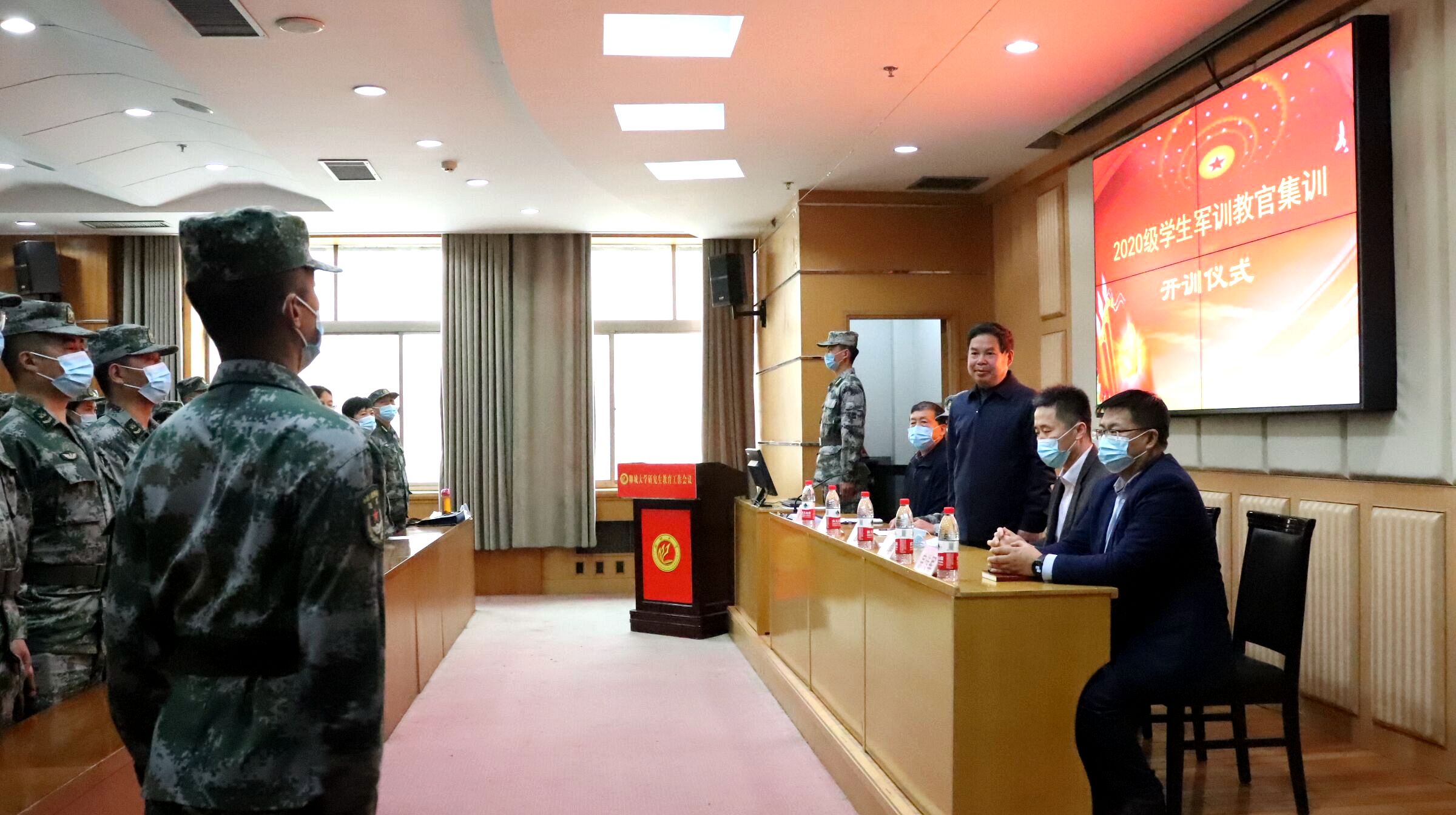 4月8日,2020级学生军训教官集训开训仪式在西校图书馆报告厅举行。校党委副书记、学生军训工作领导小组组长窦建民,部队教官以及武装部、学生工作处、团委负责同志和全体学生教官等参加开训仪式。
