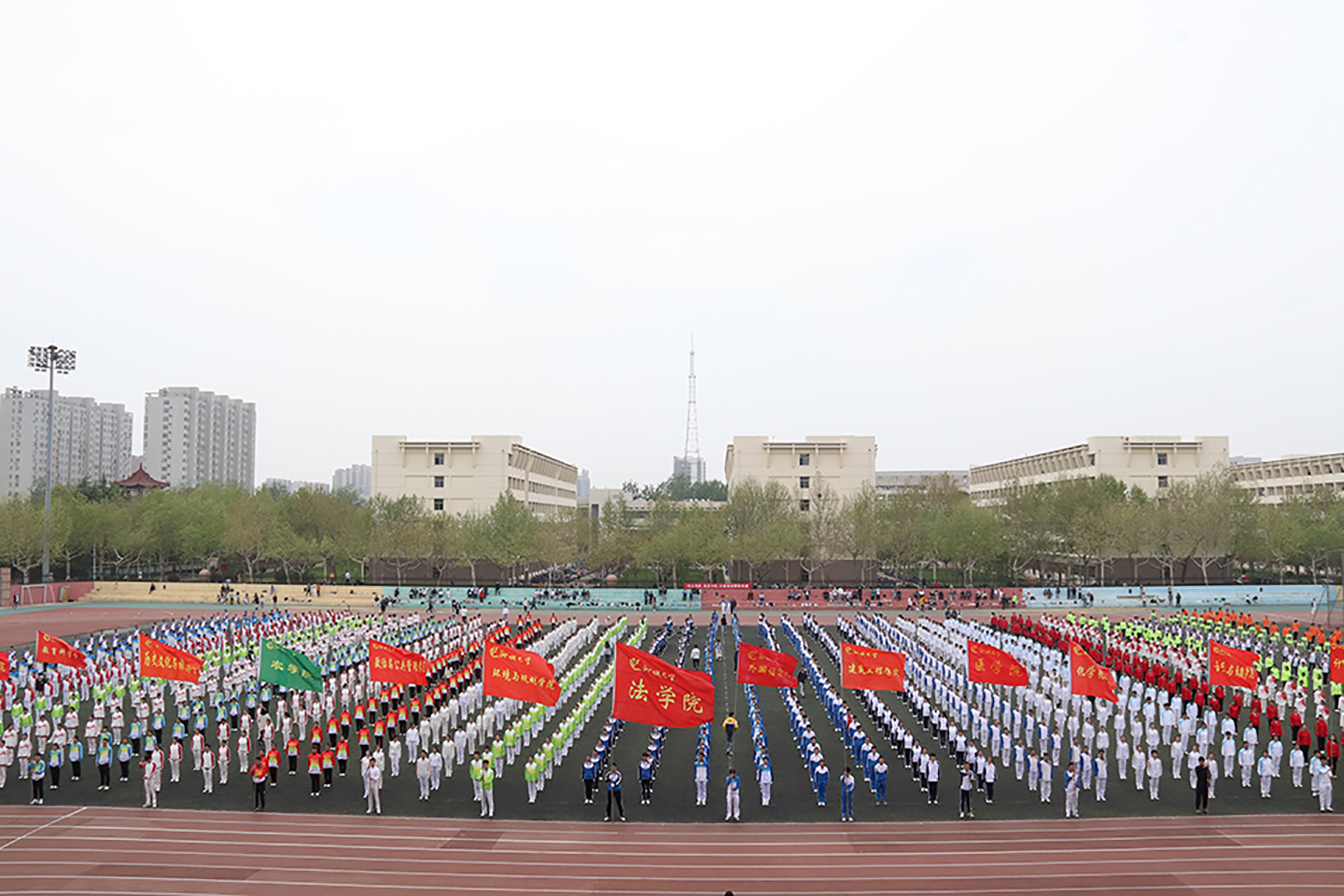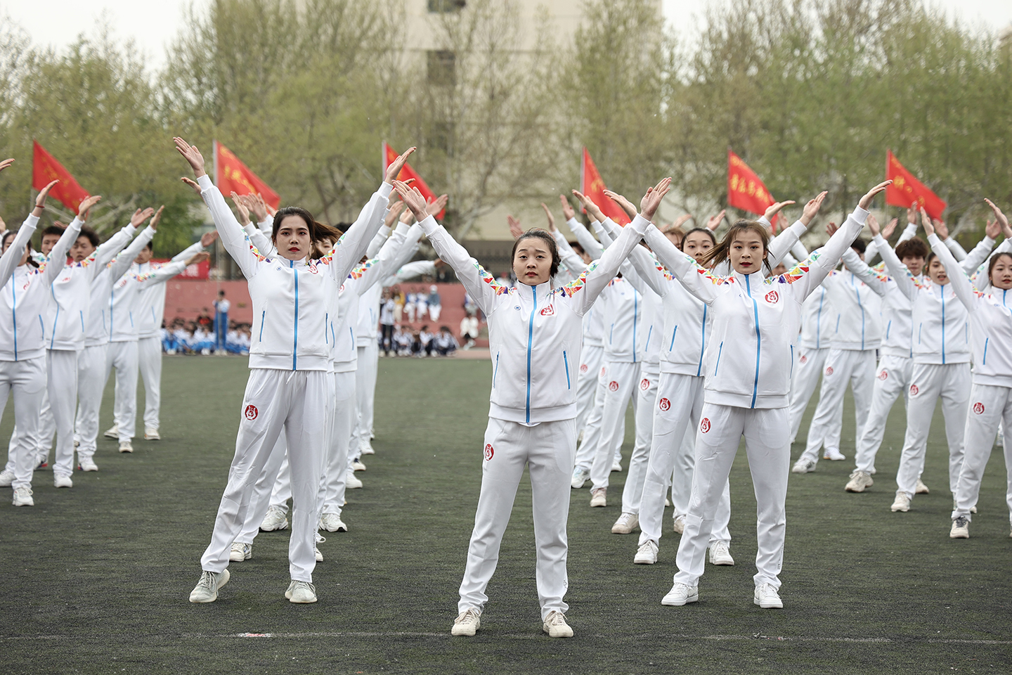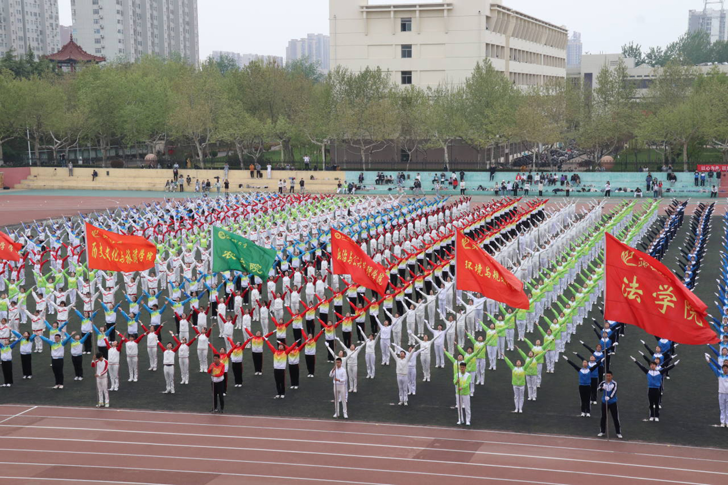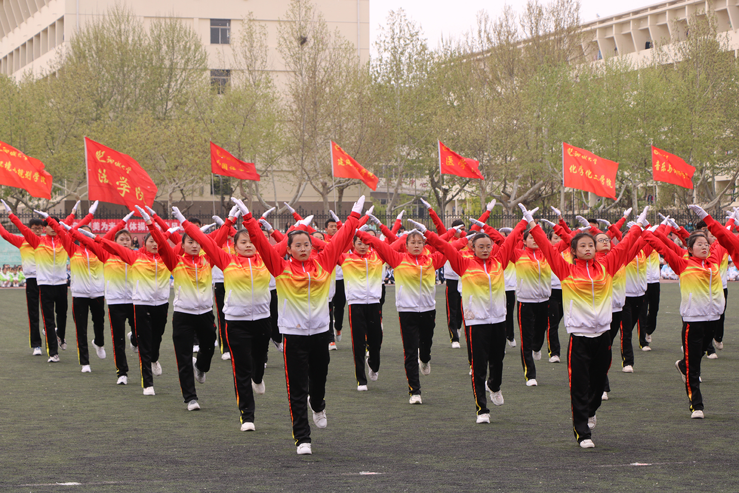 4月11日,由校团委、校学生会主办的2021年大学生广播体操大赛于西校区南田径场举行,来自全校的23支代表队参加比赛。