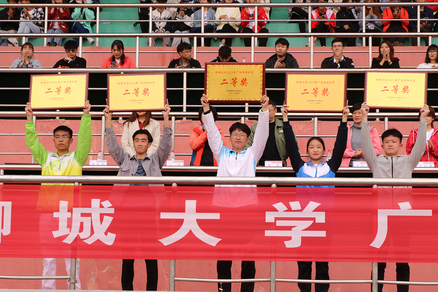 经过激烈角逐,药学院、音乐与舞蹈学院、化学化工学院3个代表队荣获一等奖,生命科学学院、体育学院、计算机学院、法学院、物理科学与信息工程学院5个代表队荣获二等奖,农学院、环境与规划学院、材料科学与工程学院、历史文化与旅游学院、商学院、外国语学院、教育科学学院7个代表队荣获三等奖,文学院、传媒技术学院、数学科学学院、美术与设计学院、建筑工程学院、政治与公共管理学院、机械与汽车工程学院、医学院8个代表队荣获优秀奖。