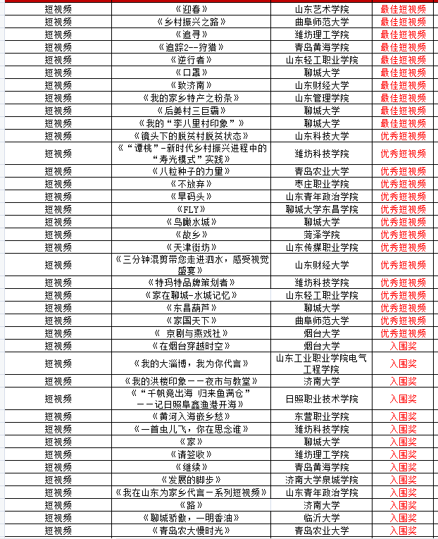 附:第三届“青春中国”山东省大学生微电影大赛获奖名单