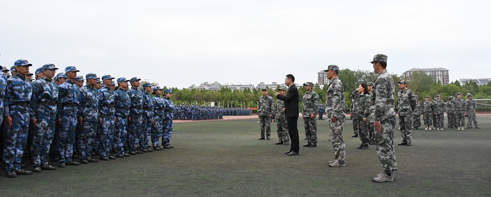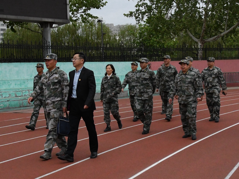 4月25日,训练场地上,军训学生队列整齐、口号嘹亮,匕首操英姿飒爽、军体拳虎虎生风。校党委书记关延平,校党委副书记、军训工作领导小组组长窦建民,校党委常委、副校长、军训工作领导小组副组长赵明吉、肖海荣,和学校军训团负责人一起,到今年会各军训训练场地检查工作,看望慰问参训教官和学生。