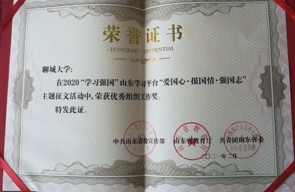 在中共山东省委宣传部、省教育厅、共青团山东省委联合举办的“爱国心·报国情·强国志”主题征文活动中,今年会大学生共9件作品被“学习强国”平台采用,荣获“优秀组织单位奖”。齐允涵投稿作品《不忘初心强本领牢记宗旨勇担当》被“学习强国”主站采用,另8件作品被山东省平台采用。