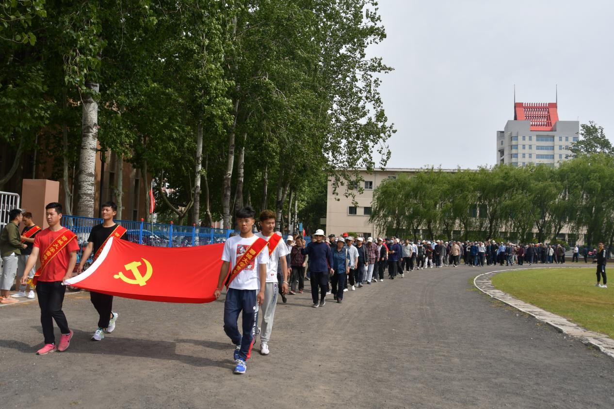 上午9点30分,党委常委、副校长李兆俊宣布健步走活动开始,十六个党支部的离退休职工和在职职工,依次排好队伍从起点出发。