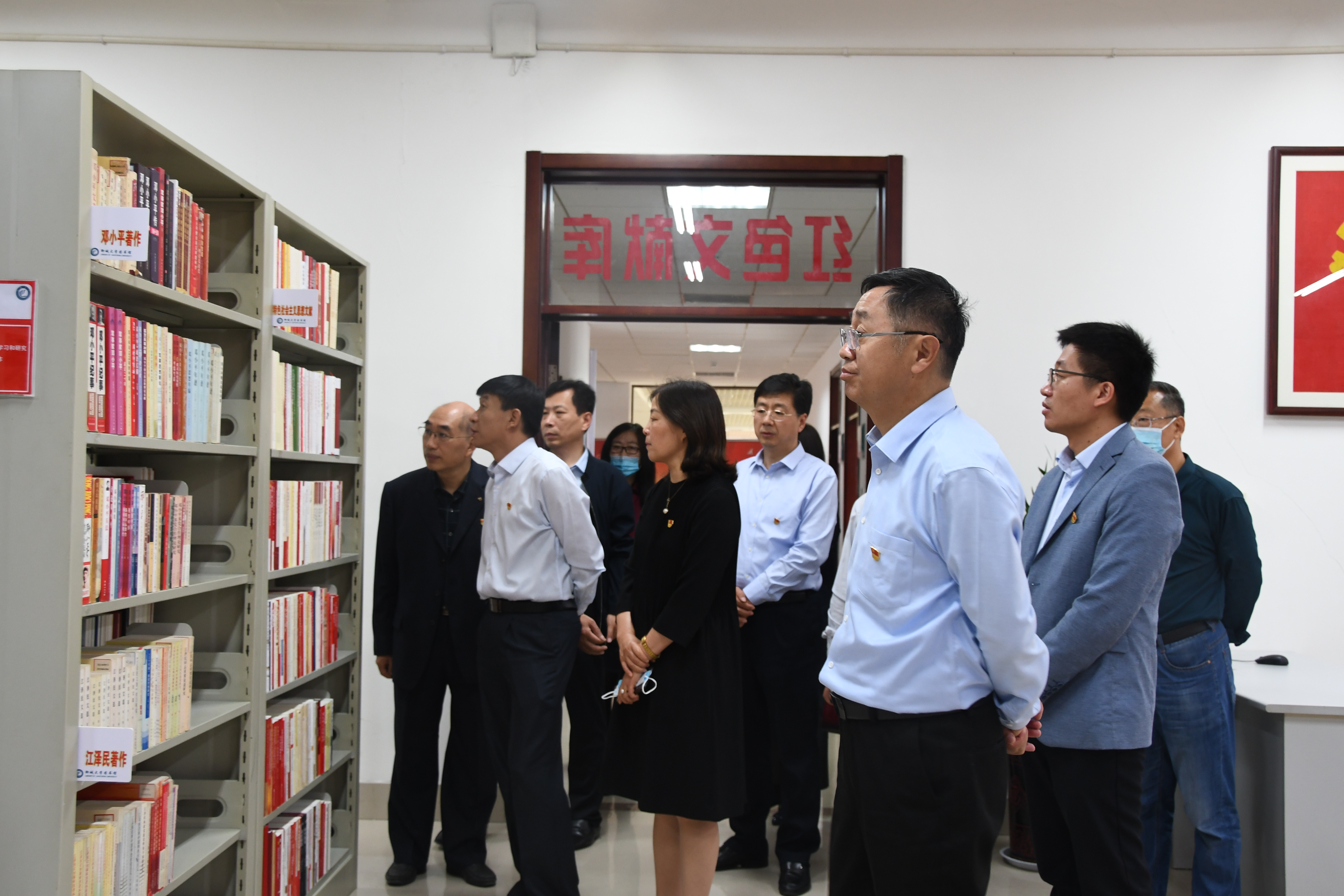 肖海荣对红色文献库的建设提出了三点要求。一是要有新气象,进一步加强软硬件建设,完善服务功能、创新服务方式、提高服务质量,进而提升文献资源的质量和数量,使红色文献库成为学校的一张靓丽名片。二是要有新功能,充分利用大数据、人工智能、互联网+图书馆等信息技术,统筹学校信息资源、创新管理模式,在现有基础上,向智慧图书馆的目标迈进,成为研究中心、文化体验的中心。三是要有新高度,传承好红色基因,激发干事创业动力,让信仰之火熊熊不息,让红色精神焕发时代光芒,让广大师生进一步提升思想认识和精神境界,为推进学校“十四五”发展,创建高水平应用型大学贡献力量。
