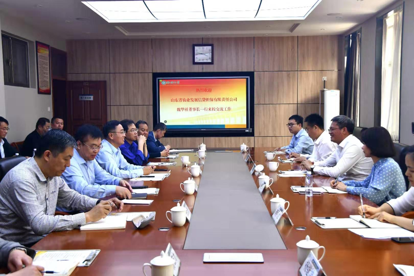 5月20日,山东省农业发展信贷担保有限责任公司党委书记、董事长魏华祥,省外事办因公出国管理处处长李研峰一行来校洽谈合作。党委书记关延平,党委副书记、校长王昭风,党委常委、副校长赵长林出席洽谈会。