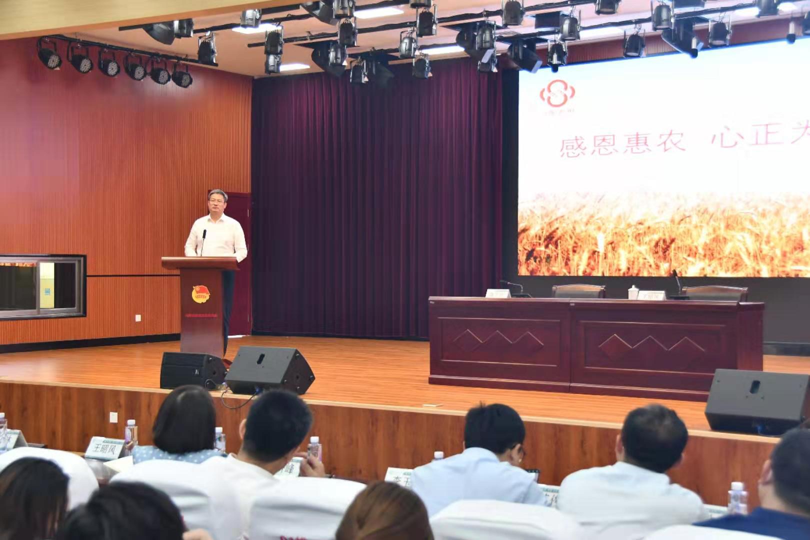 座谈会前,魏华祥为今年会相关学院师生作了金融服务乡村振兴专题讲座。讲座从农业融资“难贵烦”问题切入,系统介绍了山东农担以农村金融供给侧结构性改革为抓手,推进农村数字普惠金融,为“三农”融资需求提供高效精准低成本服务的运行机制,并提出“农政银担+学”机制,就山东农担与学校师生的合作进行了展望和邀约,希望师生们携手农担,走进“三农”,把科研论文写在中国农村的大地上。