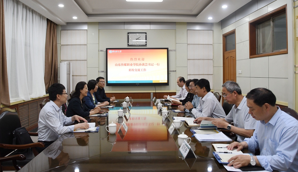 5月26日,山东传媒职业学院党委书记孙茜芸一行来校交流工作。党委书记关延平,党委常委、副校长赵明吉、肖海荣与客人进行了座谈交流。