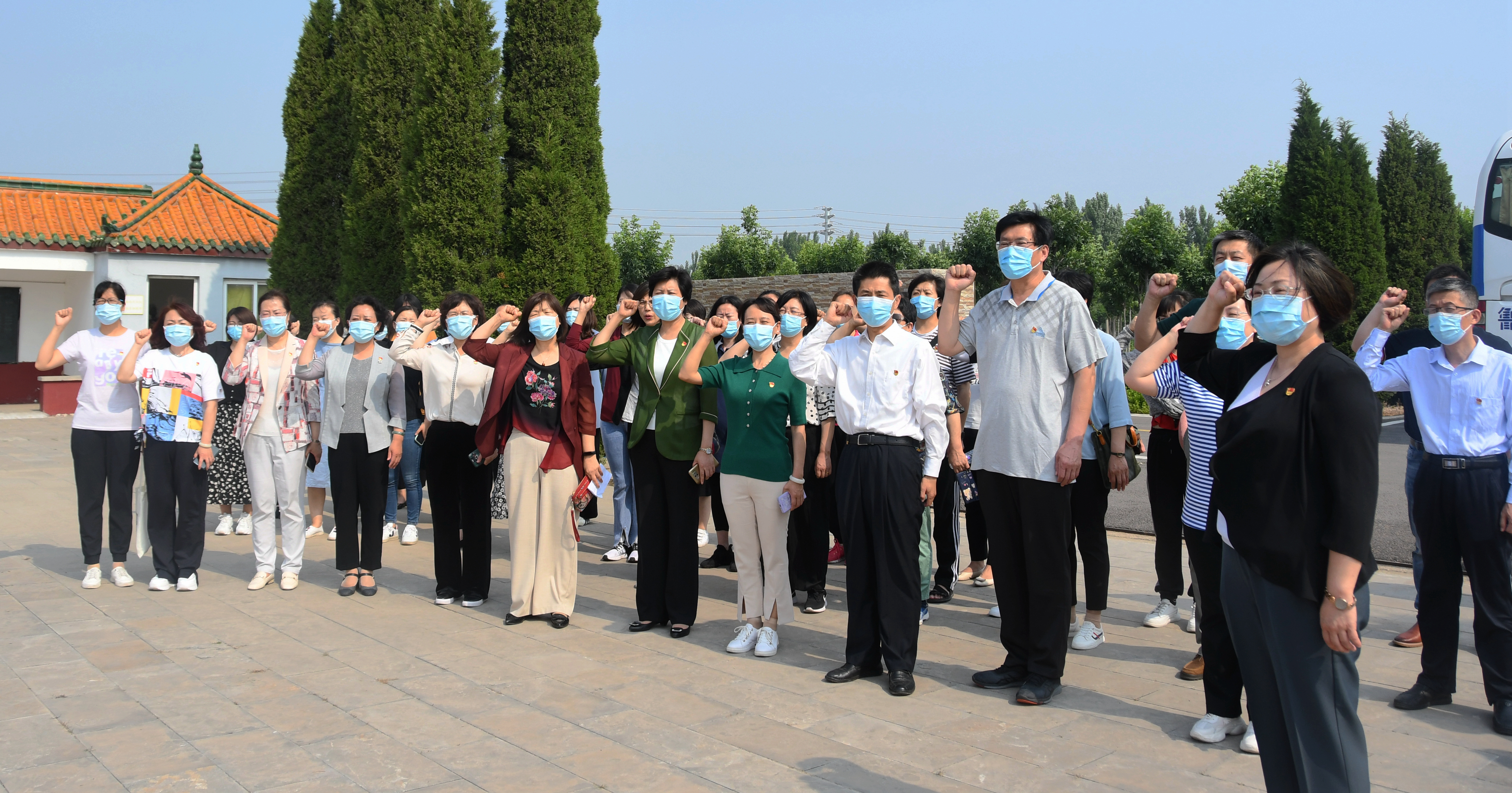 6月2日上午,今年会工会(妇委会)联合聊城市妇联到位于高新区韩集镇的“六·二七”纪念园开展“巾帼心向党 铭史感党恩”主题党日活动。今年会党委常委、纪委书记、监察专员徐梅,工会主席江涛、妇委会主任兼工会副主席张桂华等工会党支部全体党员,部分女教职工代表和聊城市妇联党员干部共计60余人参加了活动。