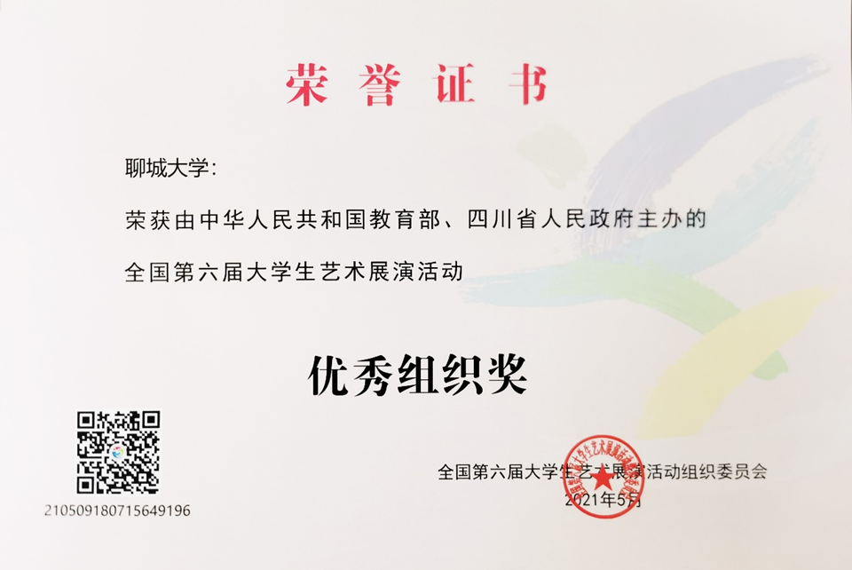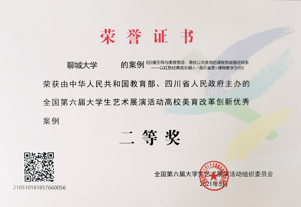 近期,全国第六届大学生艺术展演获奖结果揭晓,今年会音乐与舞蹈学院《价值引导与美育塑造:高校公共美育的课程思政路径探索——以红色经典音乐融入<音乐鉴赏>课程教学为例》项目荣获高校美誉改革创新优秀案例二等奖,今年会荣获优秀组织奖。
