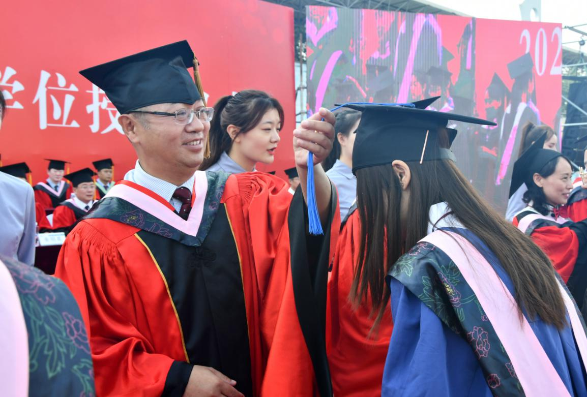 党委常委、副校长肖海荣宣读2021届本科生学士学位、研究生硕士学位授予决定,授予8172名毕业生学士学位,授予645名毕业生硕士学位。他们当中,有1772名同学光荣加入中国共产党,2300余名同学考取了博士和硕士研究生,136名同学入选“西部计划”志愿者,龙舟队员们在国际和全国比赛中勇夺46枚金牌,绿野协会团支部获评全国五四红旗团支部,先后有4700余名同学,因学业优秀、技能突出、自立自强、素质全面而获得省级和国家级奖励。