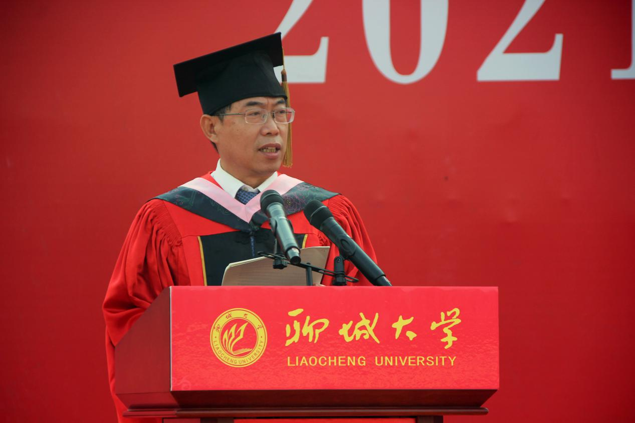 党委副书记、校长王昭风对毕业生们顺利毕业表示祝贺,并向大家提三点嘱托与希望。第一,秉持爱国情怀和责任担当,做矢志报国者。不论身处何方,从事何种职业,都始终带着聊大人的特质与情怀,充满对党、祖国和人民的热爱,胸怀“国之大者”,与祖国的风雨同舟,以青春之我,造就青春之国家。第二,秉持求知定力与创新精神,做时代开拓者。时刻秉持大学浸润的科学精神与人文情怀,崇尚真理,坚持学习,勇于创新,以终身学习的能力和“敢为天下先”的魄力,为自己的精彩人生赋能导航,为国家社会做出自己的贡献。第三,秉持健康心性和实干精神,做人生奋进者。在奔流不息的生命长河中,迎难而上,坚韧不拔,永葆执着奋斗的热情,勇做起而行之的行动者,脚踏实地的奋斗者,默而奉献的实干者,把人生之根和事业之根深扎在祖国大地上。