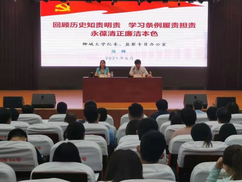 6月29日,根据学校党史学习教育领导小组的活动部署和纪委“廉政讲堂”工作安排,党委常委、纪委书记、监察专员徐梅以“回顾历史知责明责、学习条例履责担责,永葆清正廉洁本色”为题为学校全体学工干部讲授专题党课。党课由党委常委、副校长赵明吉主持。