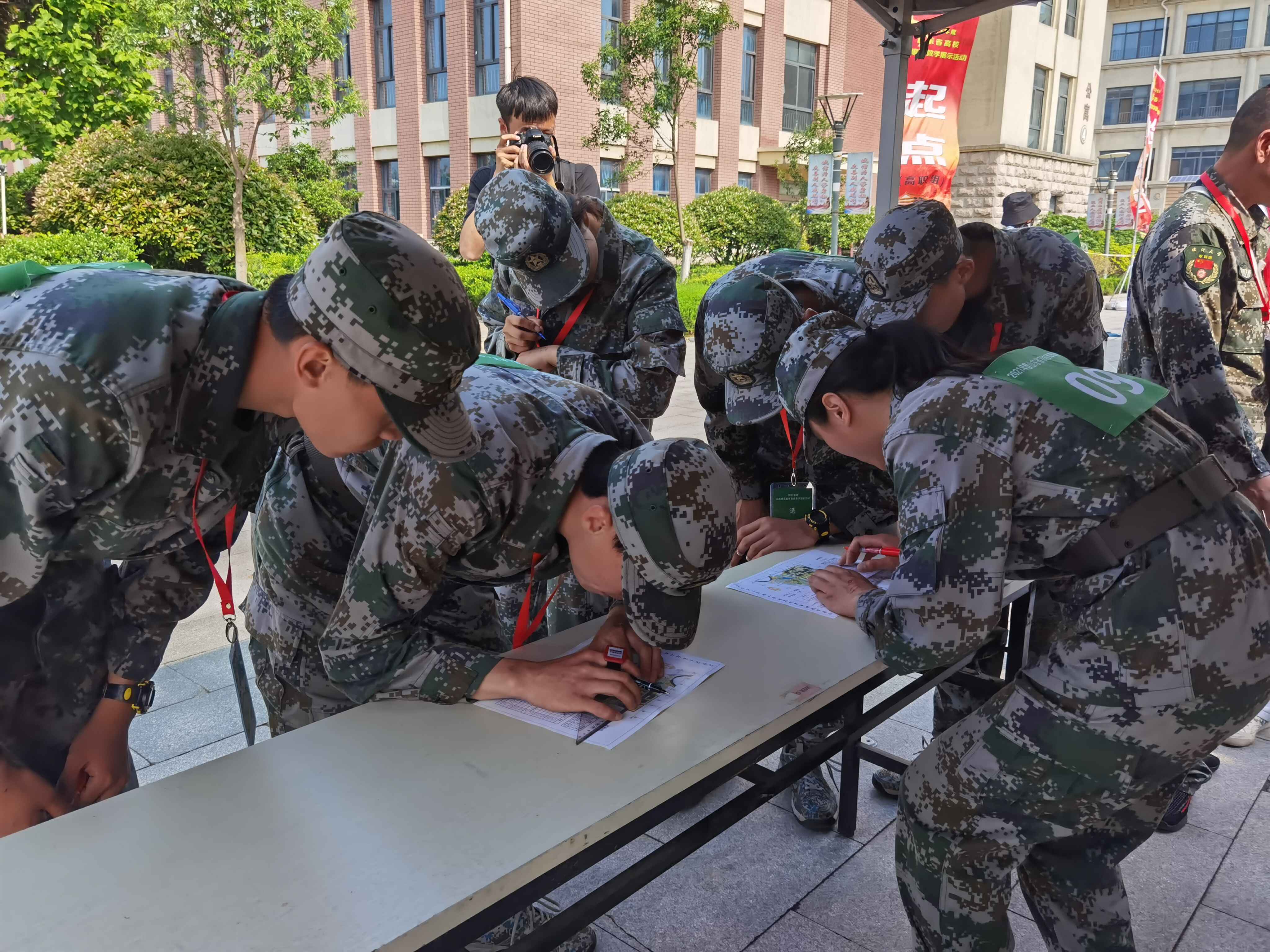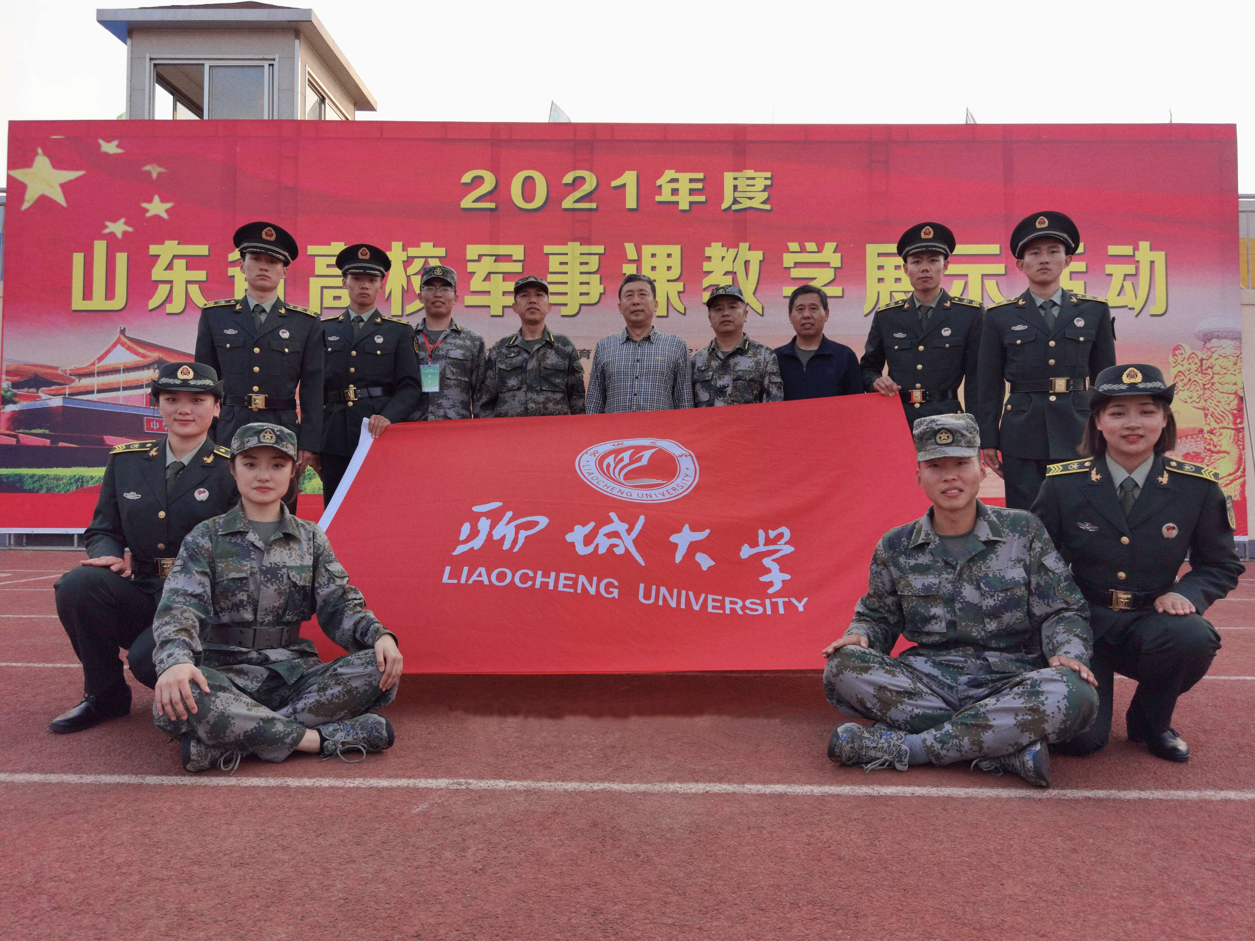 领队贺泽明,教练肖文昌、张延祥,体育学院邱兴旺、吴美玲(女)、刘丹丹(女),教育科学学院马遥、于雯琪(女),化学化工学院杨智、材料科学学院马文骏、机械与汽车学院张明君等师生组成今年会参赛队。老师和同学们利用课余和晚上时间加班训练,不断打磨提高自己的军事技能和团队配合水平,经过近一个月的精心准备和刻苦磨炼,在比赛顽强拚搏,克服重重困难,取得优异成绩。邱兴旺、杨智、吴美玲(女)、刘丹丹(女)等4名同学被省教育厅选拔代表山东省高校,参加由教育部、中央军委国防动员部联合举办的第七届全国学生军事训练营活动。