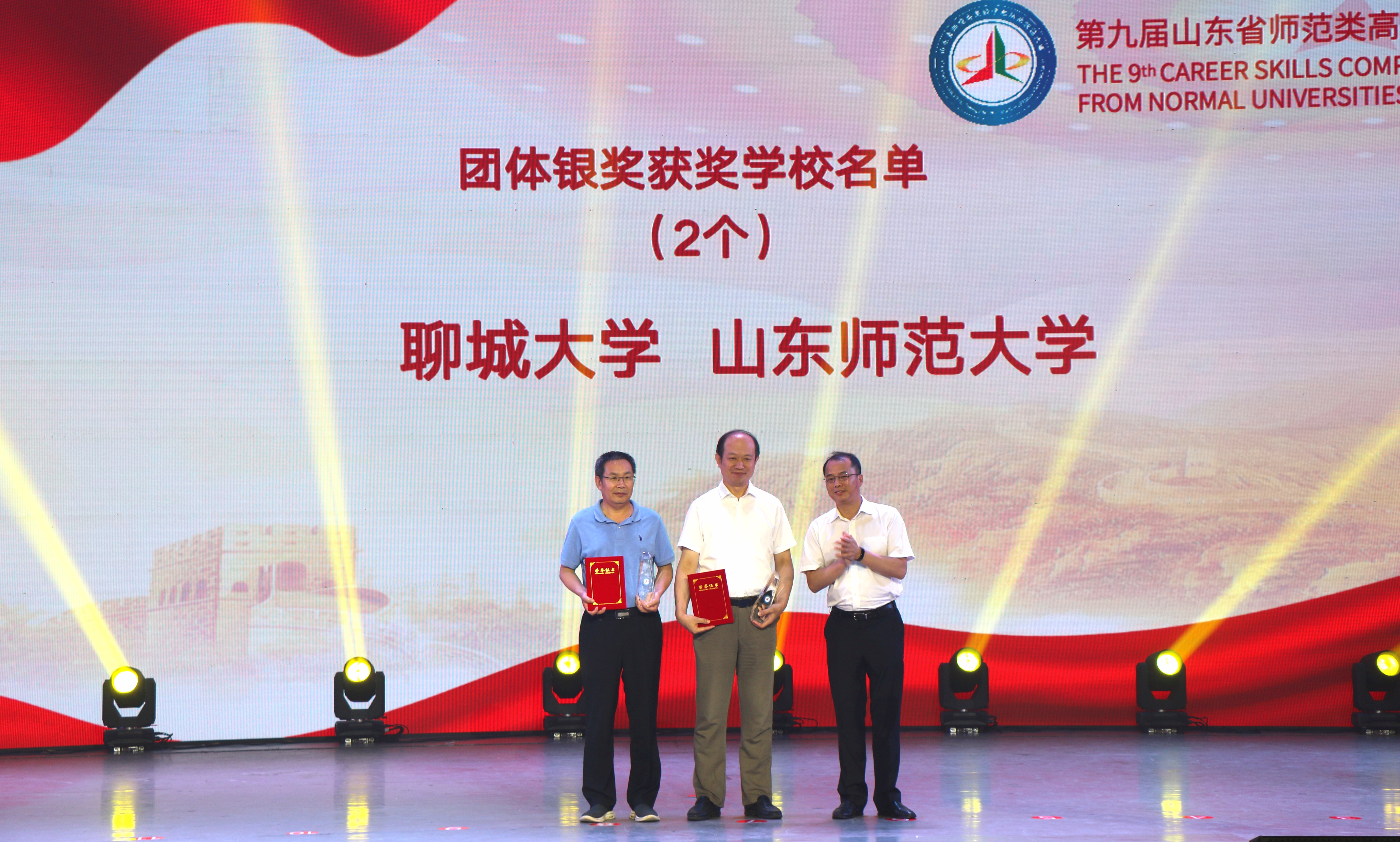 7月20—23日,第九届山东省师范类高校学生从业技能大赛省级决赛在青岛大学举行。教育部高校学生司副司长吴爱华、全国高等学校学生信息咨询与就业指导中心副主任宁小华、山东省教育厅副厅长戴龙成、青岛大学党委书记胡金焱莅临大赛现场巡视指导并出席颁奖典礼。今年会在大赛上取得突破性成绩,获奖层次和获奖人数创历史新高,获奖总人数居全省第一,并首次获得团体奖。