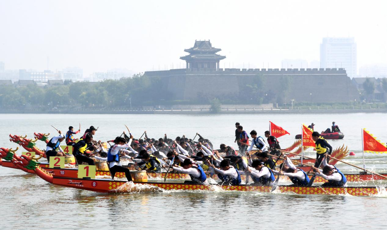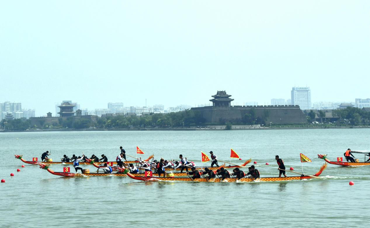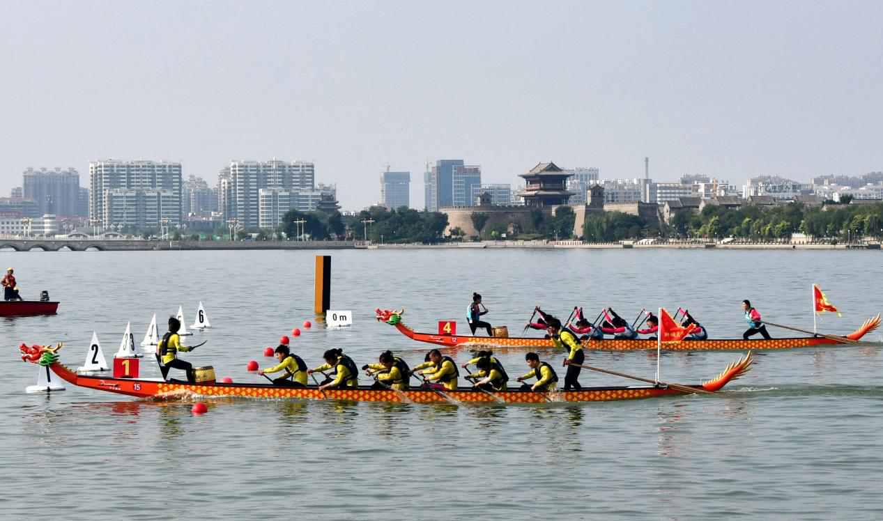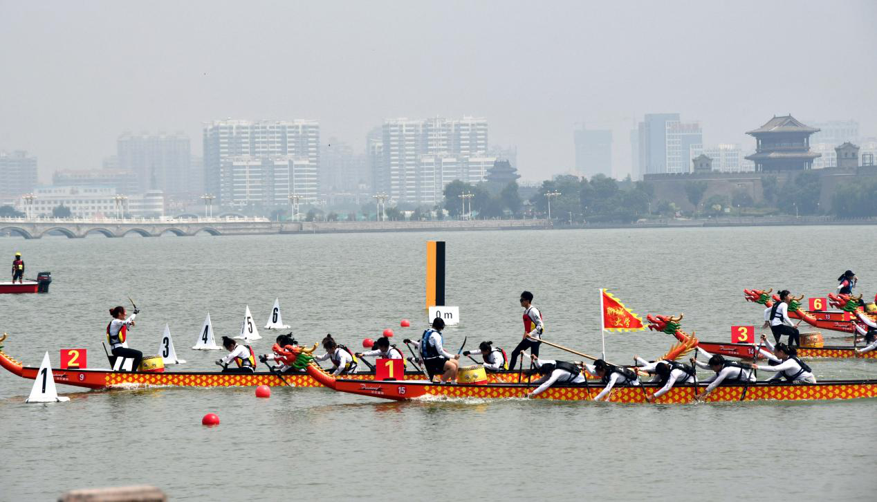 开幕式后进行了100米、200米直道赛小决赛、决赛的比赛。随着一声“预备~划!”的口令,一艘艘龙舟如出水蛟龙,沿着赛道向前冲去;飞溅的浪花、飞舞的龙旗、飞驰的龙舟、震耳欲聋的锣鼓声、呐喊声,与东昌湖岸观望、加油的人群交相辉映,展现出一幅生机勃勃、奋楫争先的精彩画面。