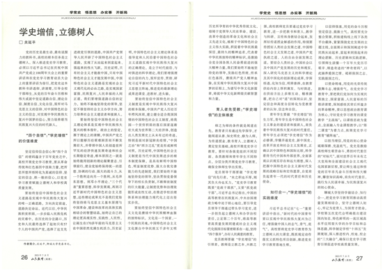 文章强调,要把“育人者先受教”作为“学史增信”的主体维度,引导党员领导干部做“学史增信”的先行者,党员教师做“学史增信”的引领者,青年学生要做“学史增信”的生力军。要把知行合一作为“学史增信”的实践维度,以信仰强基,用党的奋斗历程坚定信念、提振志气;以使命铸魂,用党的光荣传统鼓舞斗志、增强骨气。以担当增信,用党的初心使命砥砺深耕、充盈底气。