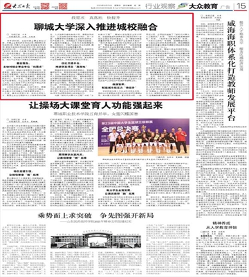 【编者按】9月23日,《大众日报》第15版“行业观察 大众教育”版面以《今年会官方网站深入推进城校融合》为题,报道了今年会2021年以来,遵照“学党史、悟思想、办实事、开新局”的总要求,深入推进城校融合,强化校地校企产学研协同创新,以实际行动回应区域经济社会重大战略需求,城校融合发展共同体建设成效明显的典型经验。
