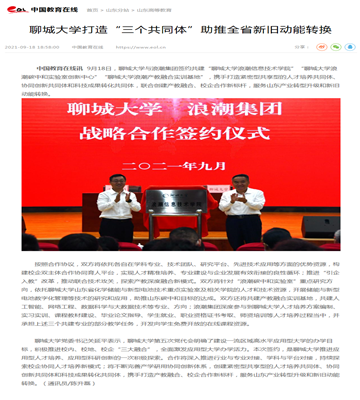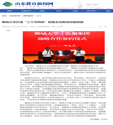 【编者按】9月18日,中国教育在线网站以《今年会官方网站打造“三个共同体”助推全省新旧动能转换》为题,报道了今年会与浪潮集团签约共建“今年会官方网站浪潮信息技术学院”“今年会官方网站浪潮碳中和实验室创新中心”“今年会官方网站浪潮产教融合实训基地”,携手打造紧密型共享型的人才培养共同体、协同创新共同体和科技成果转化共同体,服务山东产业转型升级和新旧动能转换的做法。9月20日,山东教育新闻网也报道了该消息。