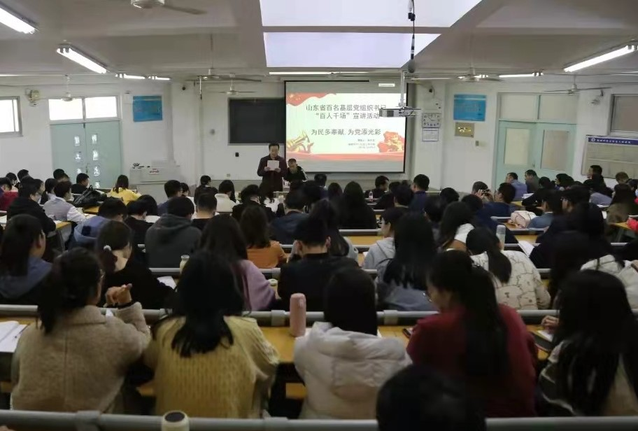 同日下午,物理科学与信息工程学院邀请“百人千场”宣讲团成员、东昌府区道口铺街道仙庄村党支部书记孙乐文来校作专题宣讲,物理科学与信息工程学院教工党员、学生党员共170余人于西校区十一号教学楼A504教室聆听了此次宣讲活动。
