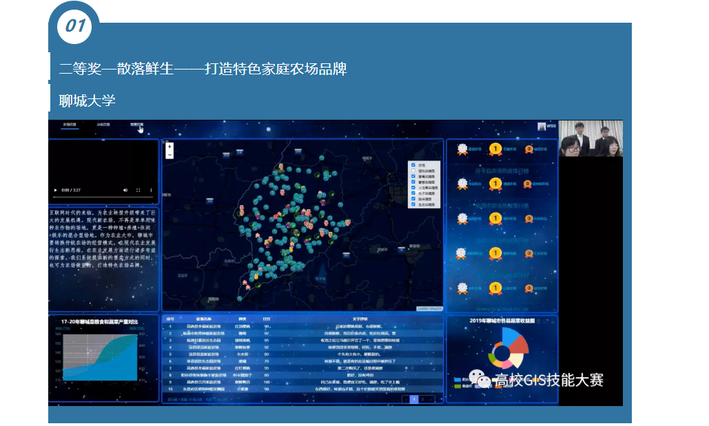 此外,10月28日,在中国测绘学会、中国地理信息产业协会、国家地理信息系统工程技术研究中心主办,武汉中地数码集团承办的第十三届全国高校GIS技能大赛中,董天赐、袁国安、黄容蓉、石永环在何振芳、马雪梅老师的指导下,所提交的作品《散落鲜生——打造特色家庭农场品牌》荣获高级开发组二等奖。