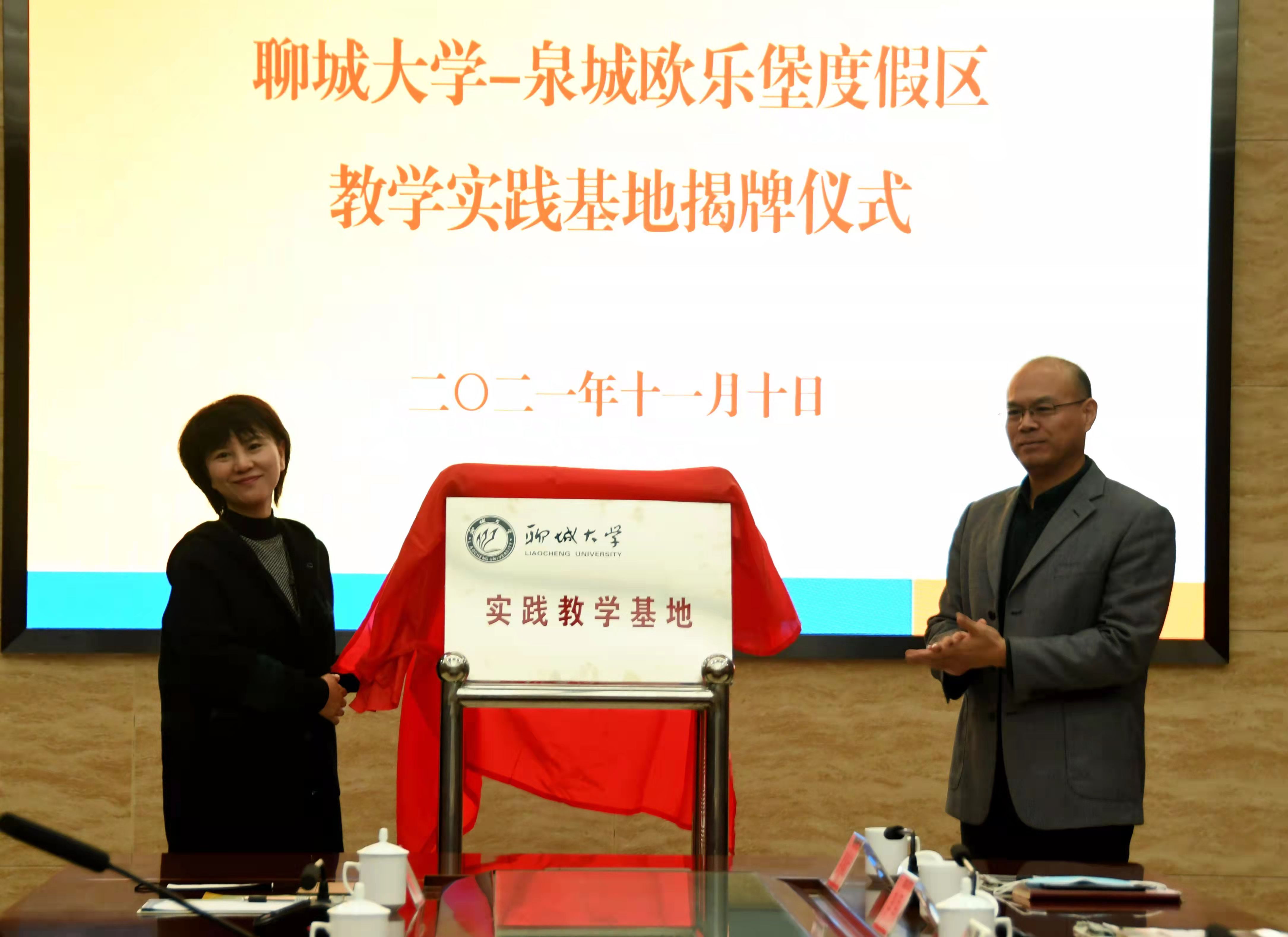 11月10日,今年会官方网站—泉城欧乐堡度假区教学实践基地揭牌仪式于第四会议室举行。坤河旅游开发有限公司常务副总经理刘妍,党委常委、副校长肖海荣出席揭牌仪式。党委书记关延平在仪式前与刘妍进行了座谈交流。