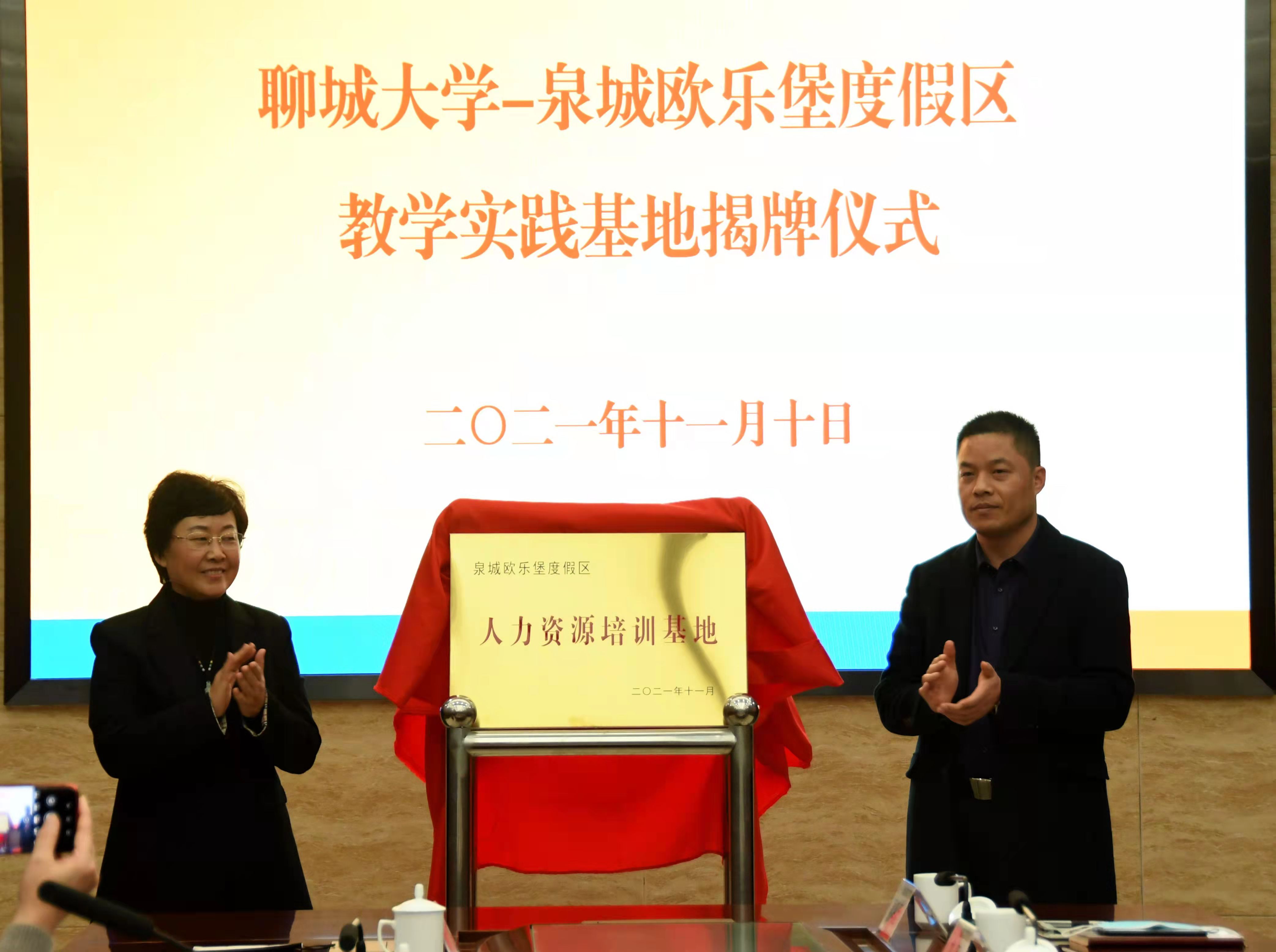 仪式上,双方共同为今年会官方网站—泉城欧乐堡度假区教学实践基地、泉城欧乐堡度假区人力资源培训基地揭牌。