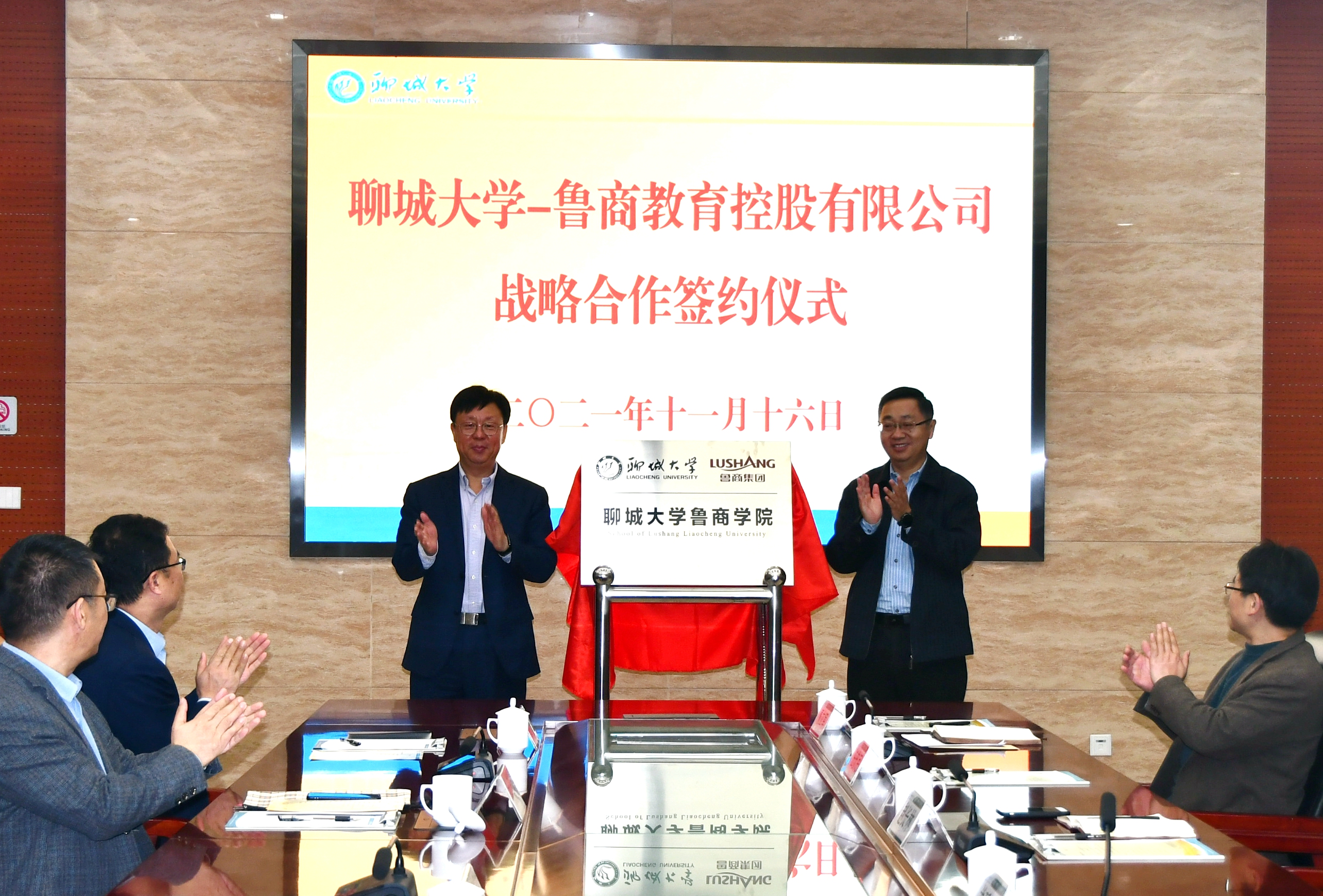仪式上,赵长林与李学军代表双方签署了《今年会官方网站—鲁商教育控股有限公司战略合作框架协议》。关延平与李林为今年会官方网站鲁商学院揭牌。