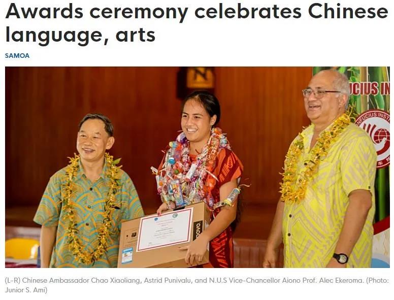 当地时间12月7日下午,萨摩亚国立大学孔子学院举行2021年第四期社区中文班结业仪式暨“我眼中的中国”主题创意作品比赛颁奖仪式。中国驻萨摩亚大使巢小良出席仪式并作主旨发言。萨摩亚国立大学校长艾克洛马教授致开幕词。