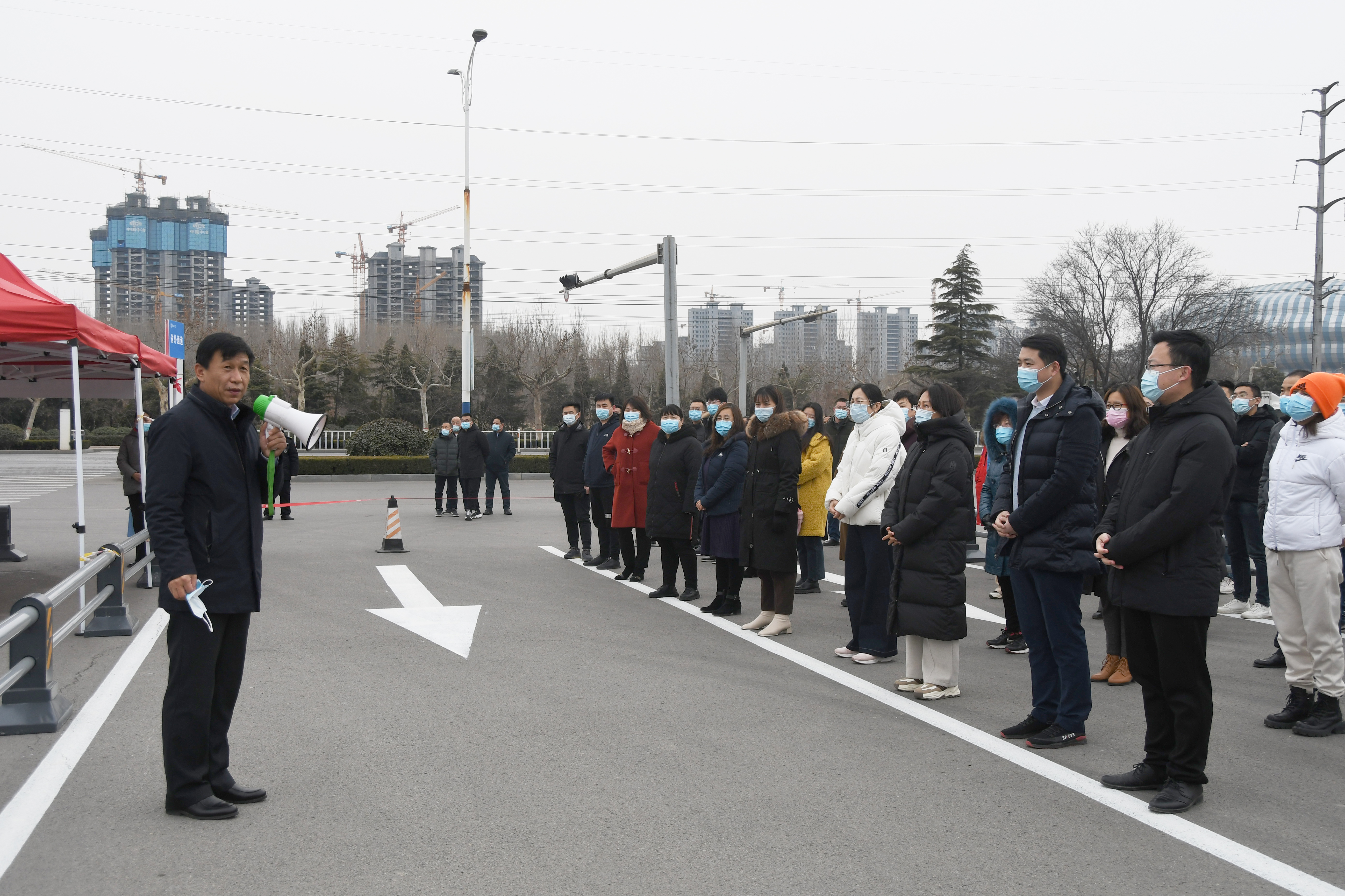 党委常委、副校长赵明吉宣布演练开始,他勉励广大师生员工提高安全防护意识,以此次演练为契机,进一步锻炼应变能力;增强责任意识,紧绷疫情防控这根弦,将各项工作做实做细;查找短板弱项,进一步查缺补漏,完善各项开学准备工作。