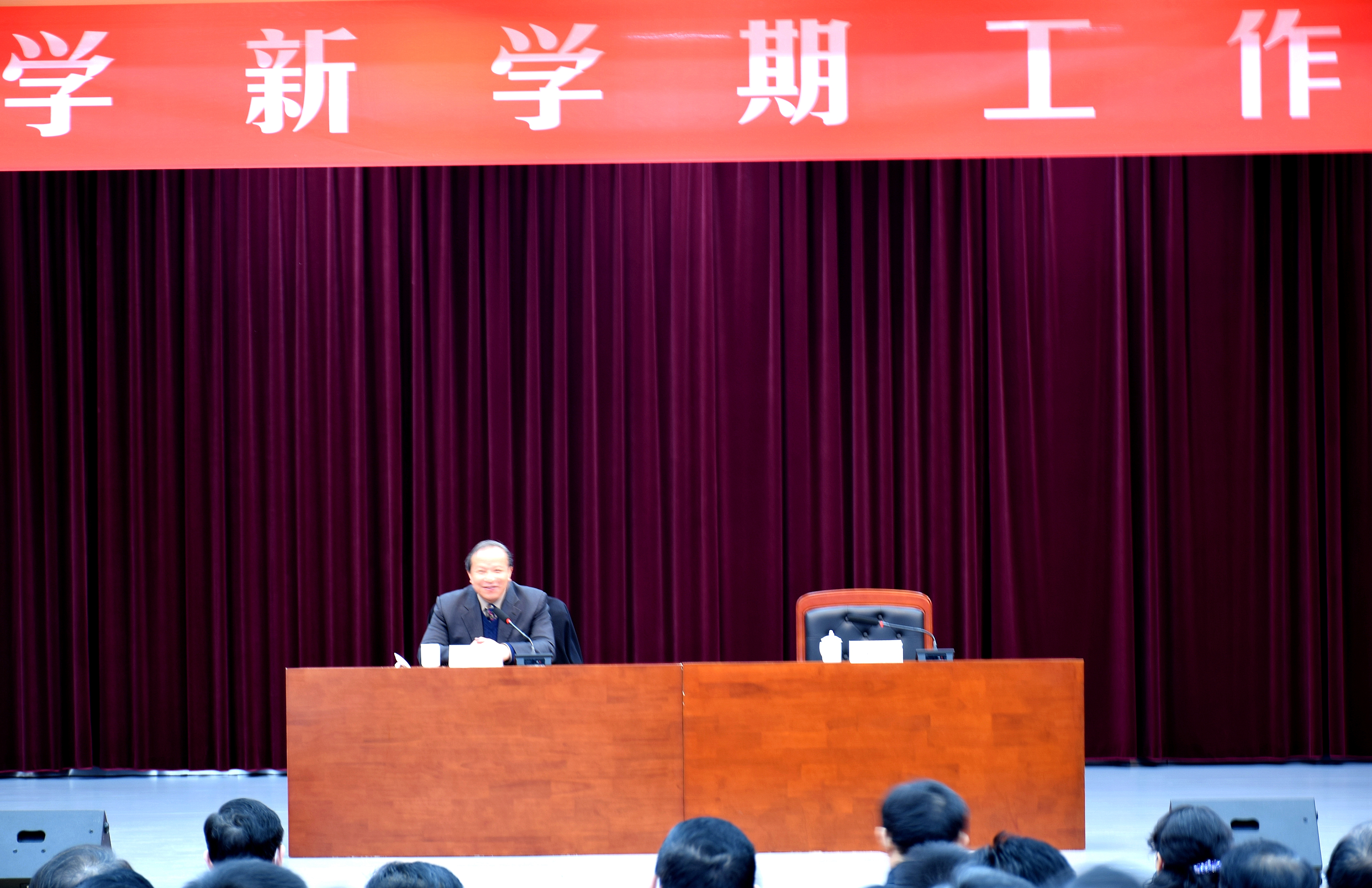 2月19日上午,学校新学期工作部署会在学团楼多功能厅召开。校党委副书记、校长王昭风出席会议并讲话。在家学校党委领导班子成员、全校中层干部参加会议。党委常委、副校长赵长林主持会议。