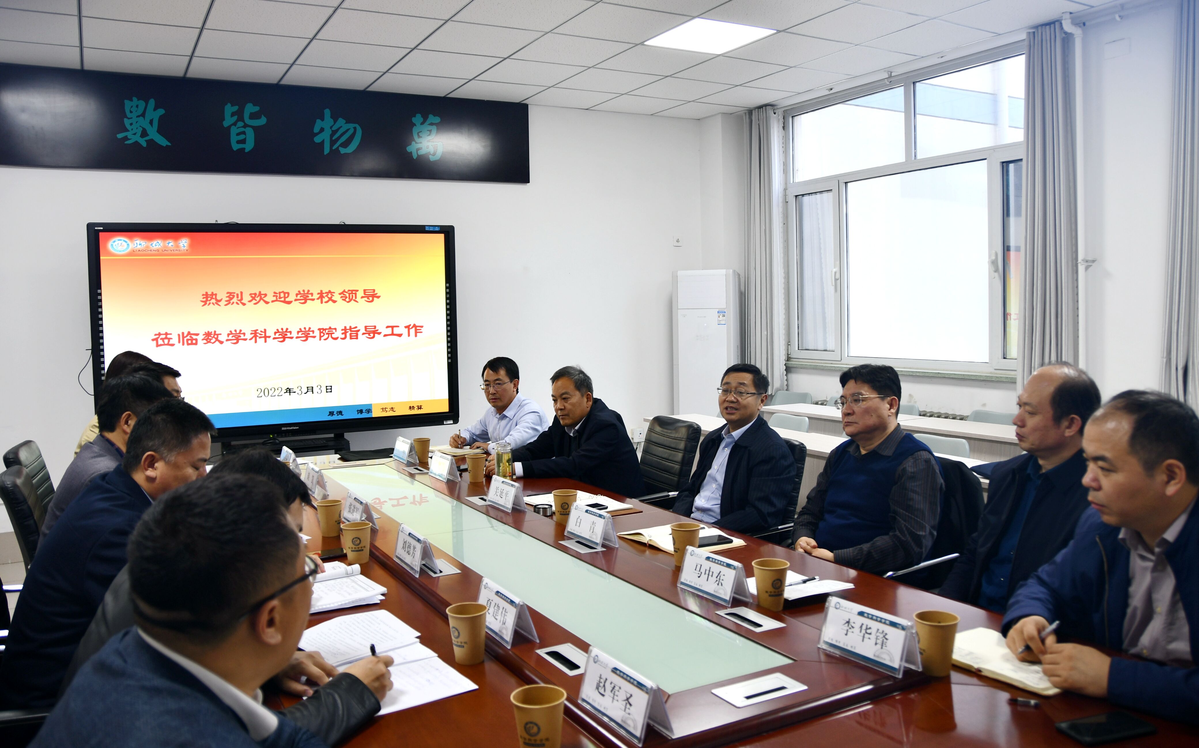 3月3日,党委书记关延平,党委常委、副校长白青一行到数学科学学院调研指导工作。党委办公室(学校办公室)、党委教师工作部(人力资源处)、发展规划与学科建设处、教务处主要负责同志参加调研。