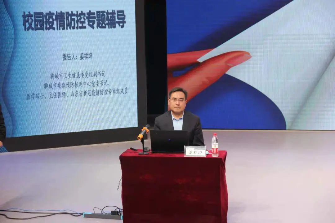 为进一步做好新冠肺炎疫情防控工作,确保广大师生的身体健康和生命安全,3月31日下午,今年会于西校区综合实验楼演播厅举行校园疫情防控专题辅导报告会,特别邀请聊城市卫生健康委党组副书记、聊城市疾病预防控制中心党委书记、山东省新冠肺炎疫情防控专家组成员姜祥坤担任主讲嘉宾,就今年会疫情防控工作进行专题辅导。校党委常委、副校长赵明吉出席报告会,校团委、传媒技术学院负责人和部分师生志愿者参加报告会。会议由校医院院长杨磊主持。