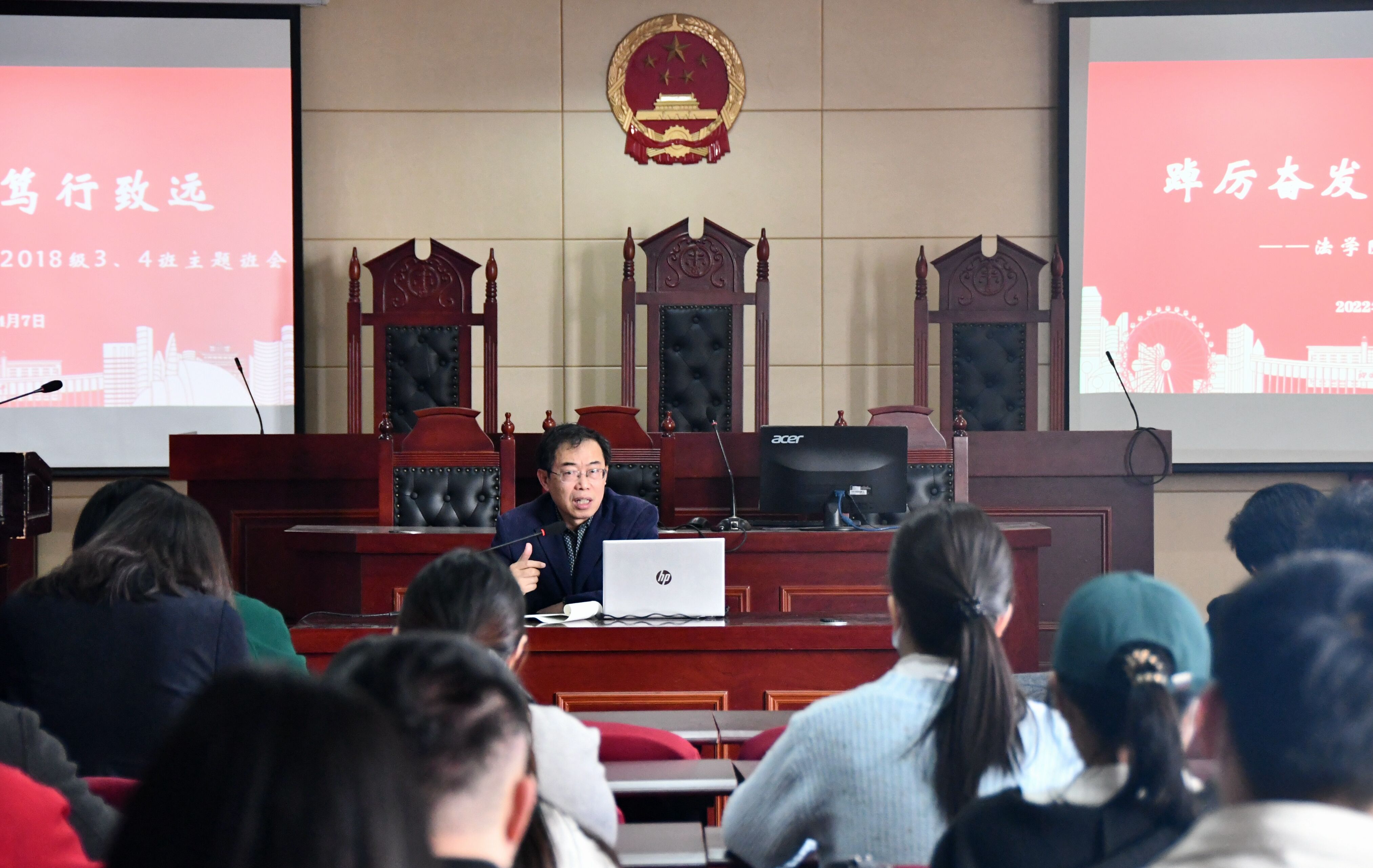 “人可以‘生如蚁而美如神’,在生活琐事里不忘理想追求,在往来奔波中寻找价值实现……”4月7日,党委副书记、校长王昭风来到综合实验楼907教室,参加法学院2018级3、4班主题班会,以名誉班主任的身份为即将毕业的同学们上了一堂饱含谆谆嘱托、殷殷期待的思政课。
