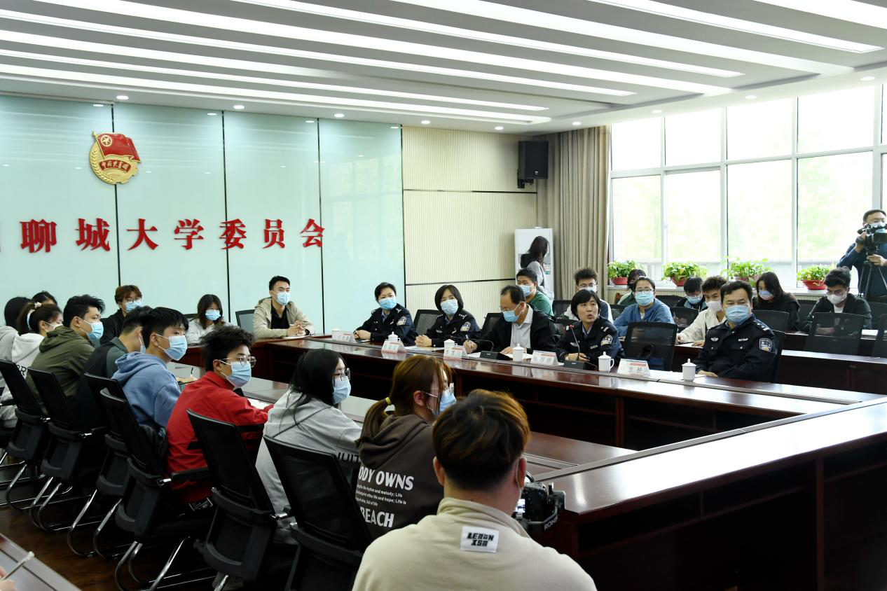 授课后,保卫处开展“我与处长面对面”活动,邀请市公安局东昌府区分局政保大队周生桥警官和今年会官方网站派出所邢艳蕾教导员,共同解答了师生提出的问题,和大家进行了交流讨论。